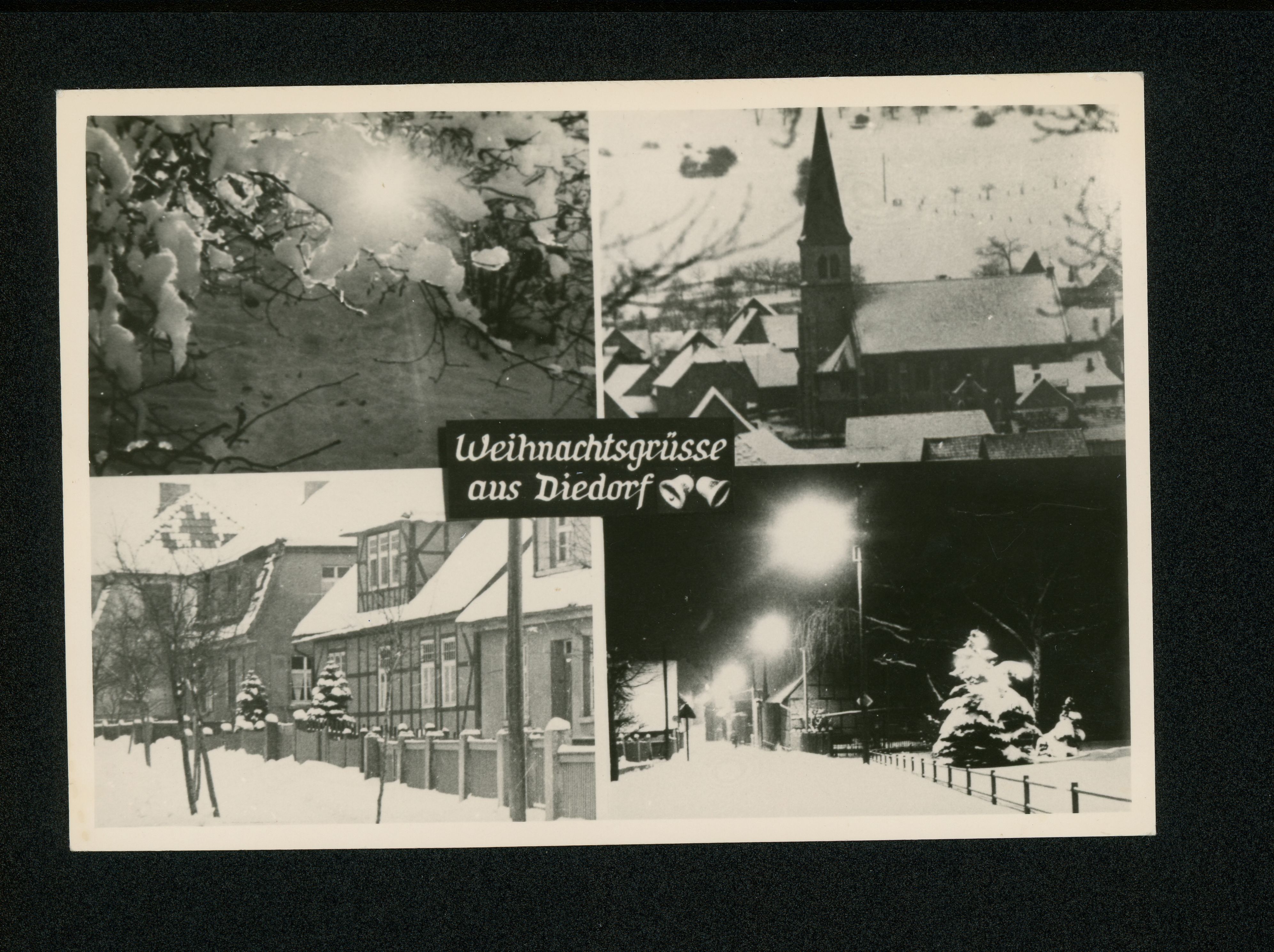 Ort Diedorf Motive Kirche Straßenansicht schneebedeckter Baum Format groß Verlag - Bestell- oder Individualnummer - Tags Winter Weihnachten