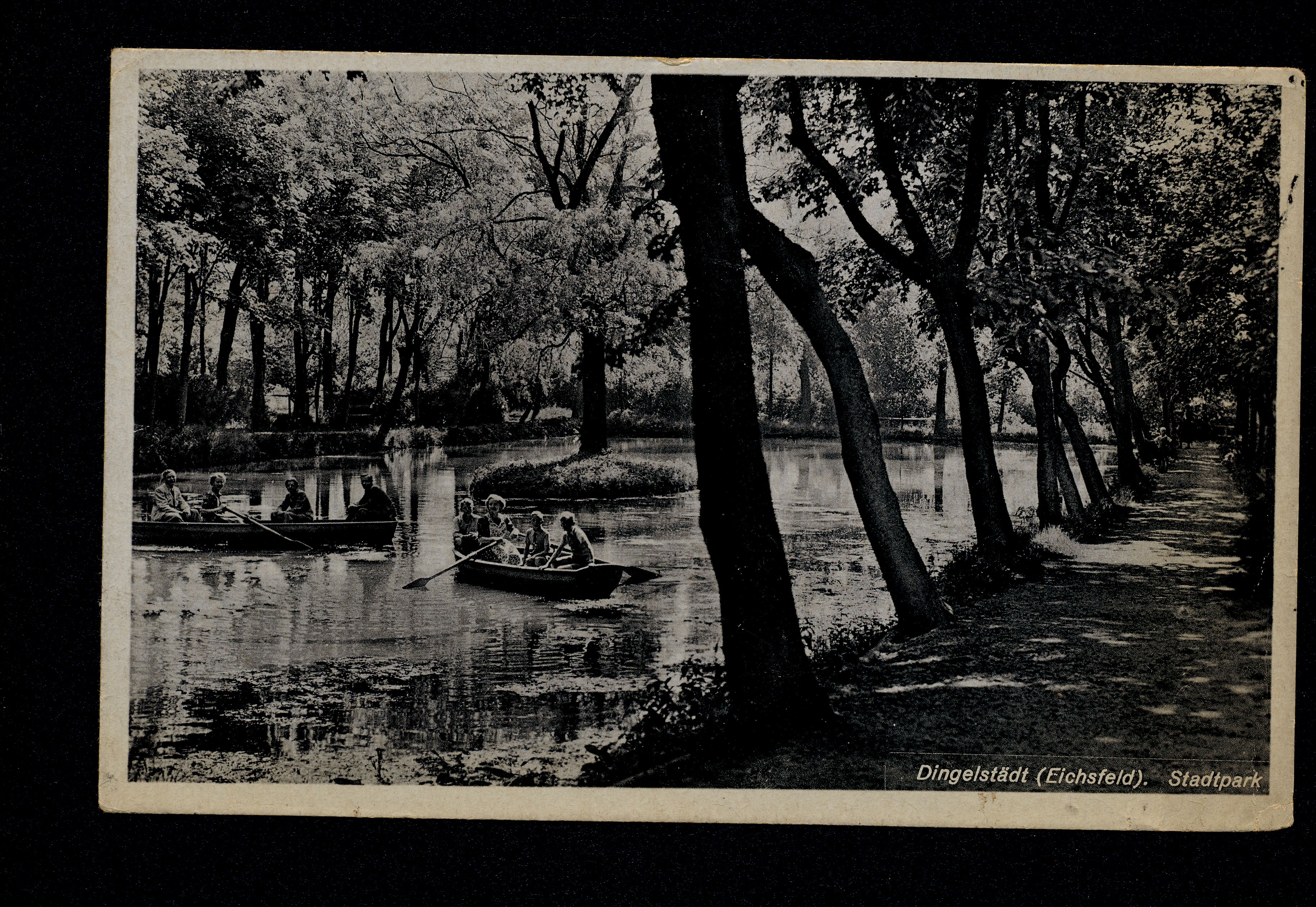 Ort Dingelstädt Motive Stadtpark Format klein Verlag Egon Wetzel, Dingelstädt Eichsfeld Bestell- oder Individualnummer 64083 Tags Riethpark Ruderboot