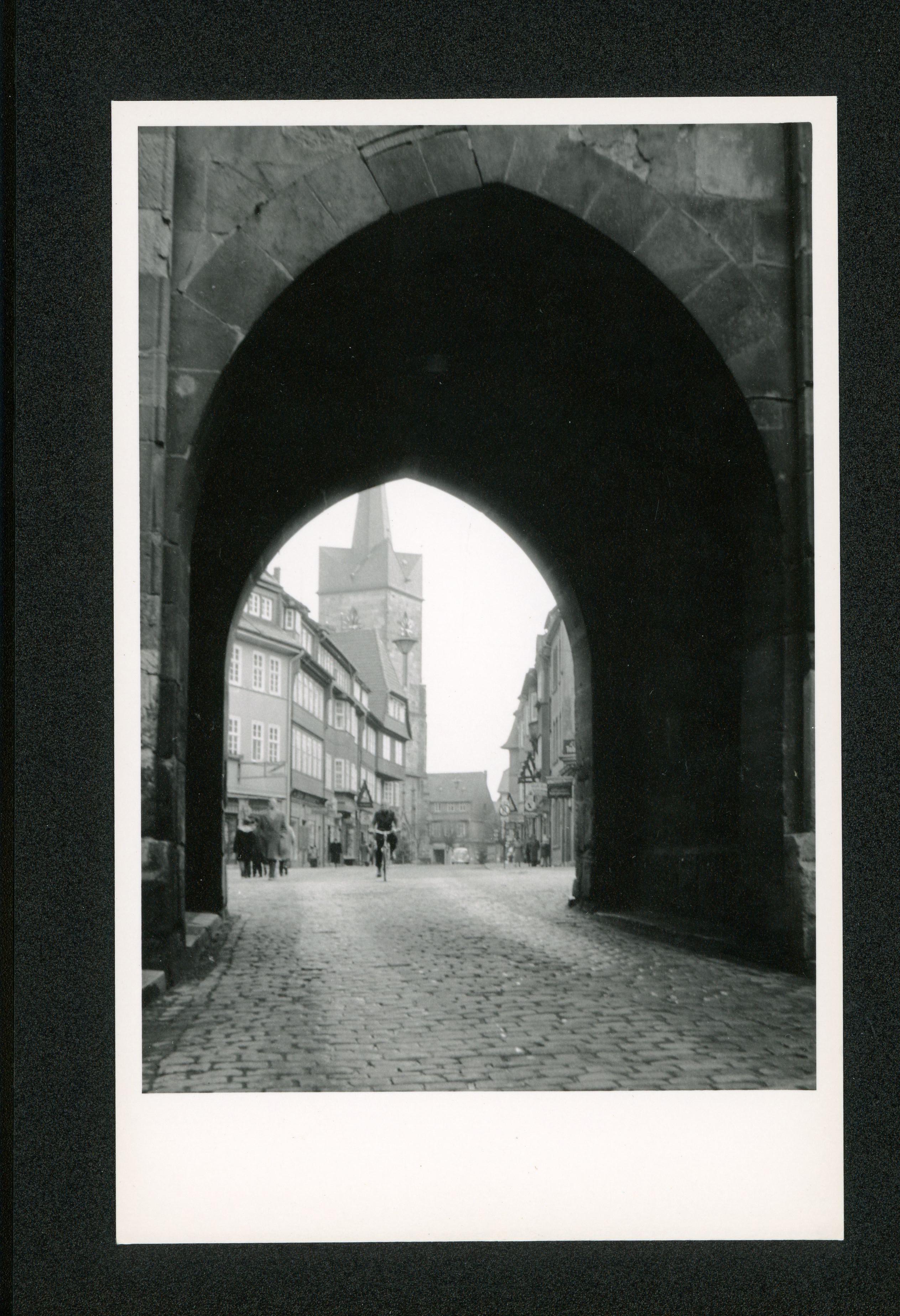 Blick durch den Westerturm auf die Spiegelbrücke