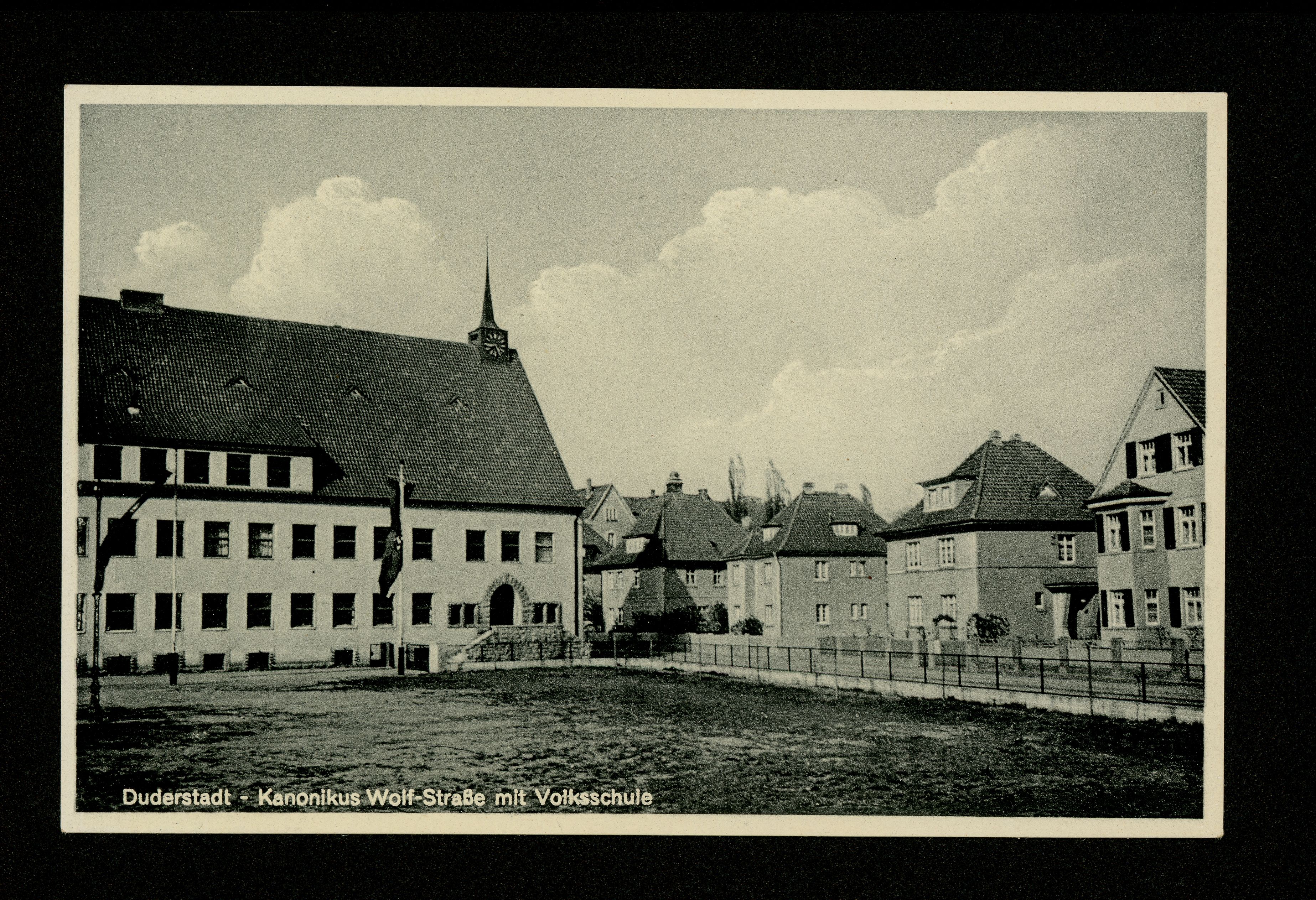 Ort Duderstadt Motive Kanonikus Wolf-Straße mit Volksschule Format klein Verlag Gebrüder Seseke, Duderstadt Bestell- oder Individualnummer Nr. 277 X 18 Tags St.-Elisabeth-Grundschule
