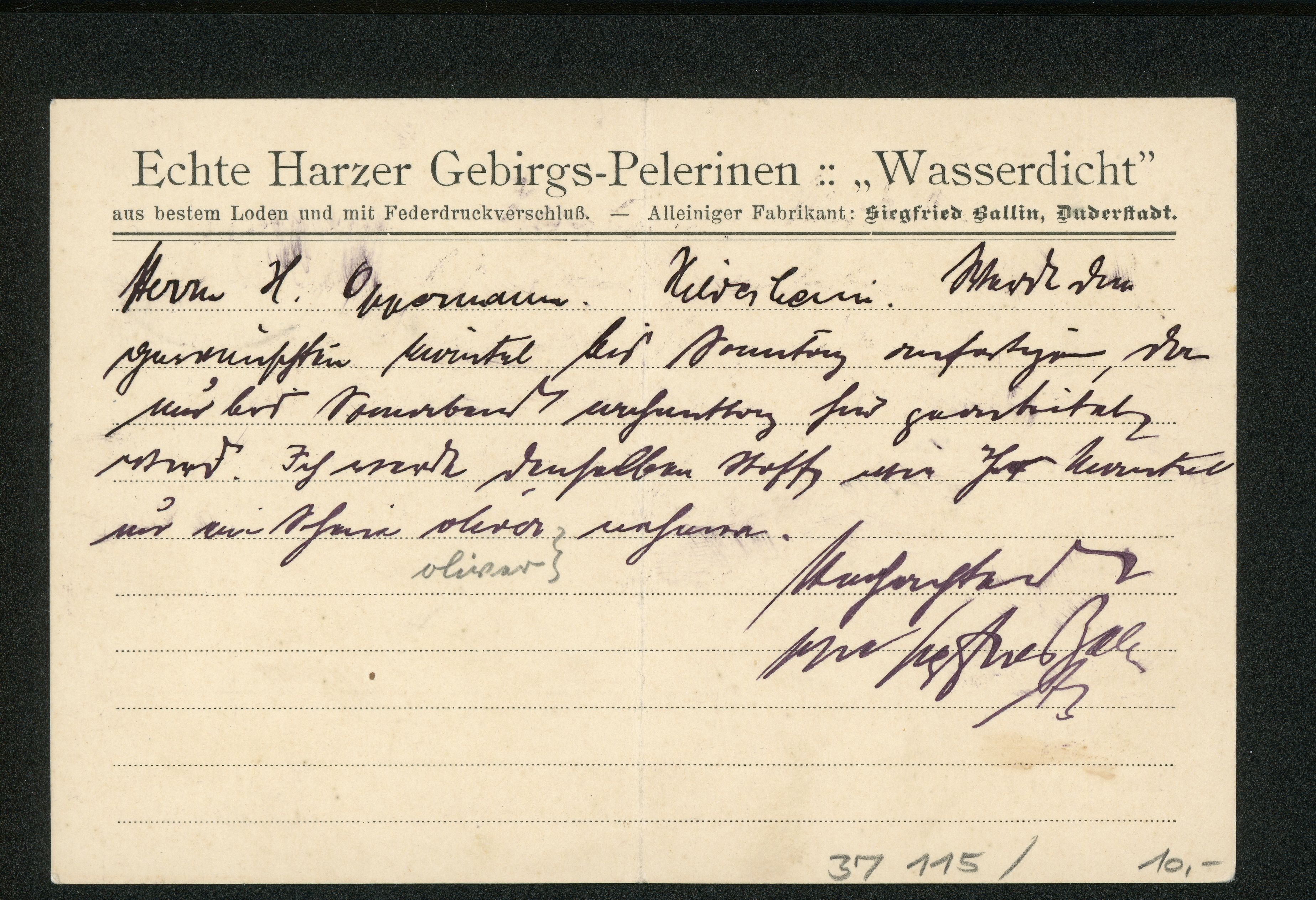 Ort Duderstadt Motive Echte Harzer Gebirgs-Pelerinen :: ''Wasserdicht'' Format klein Jahr 1913 Verlag - Bestell- oder Individualnummer - Versanddatum 19.12.1913