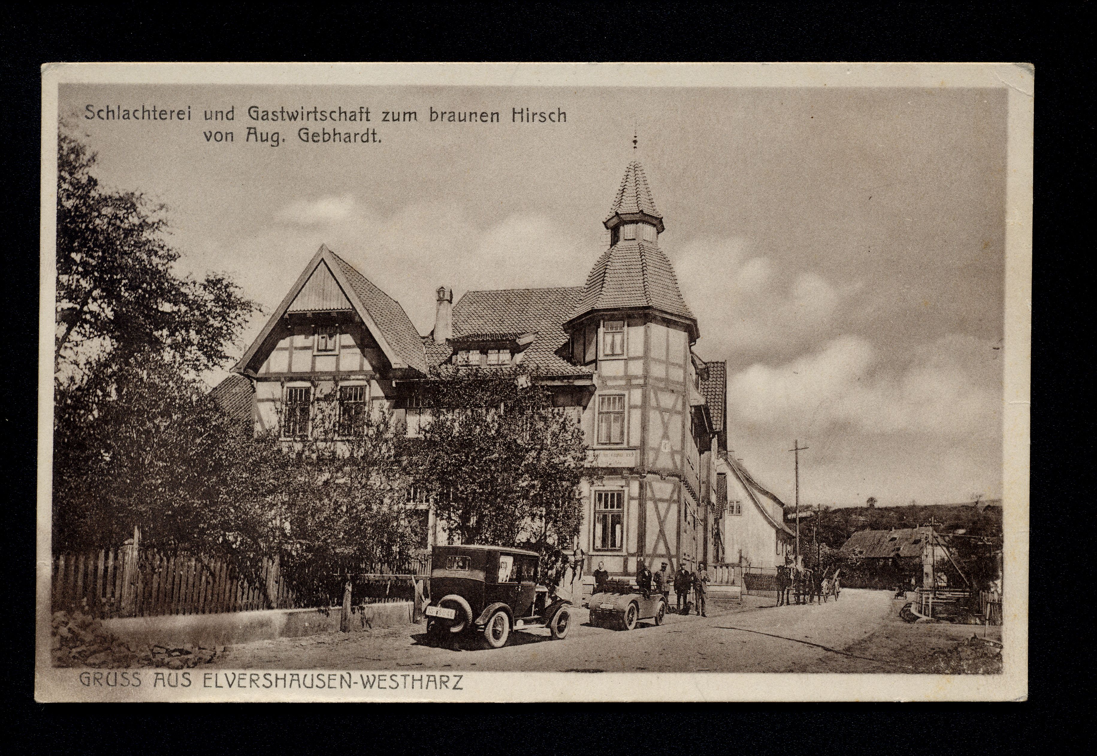 Ort Elvershausen Motive Schlachterei Gastwirtschaft Zum braunen Hirsch Aug. Gebhardt Format klein Verlag Georg Richers, Northeim Bestell- oder Individualnummer -