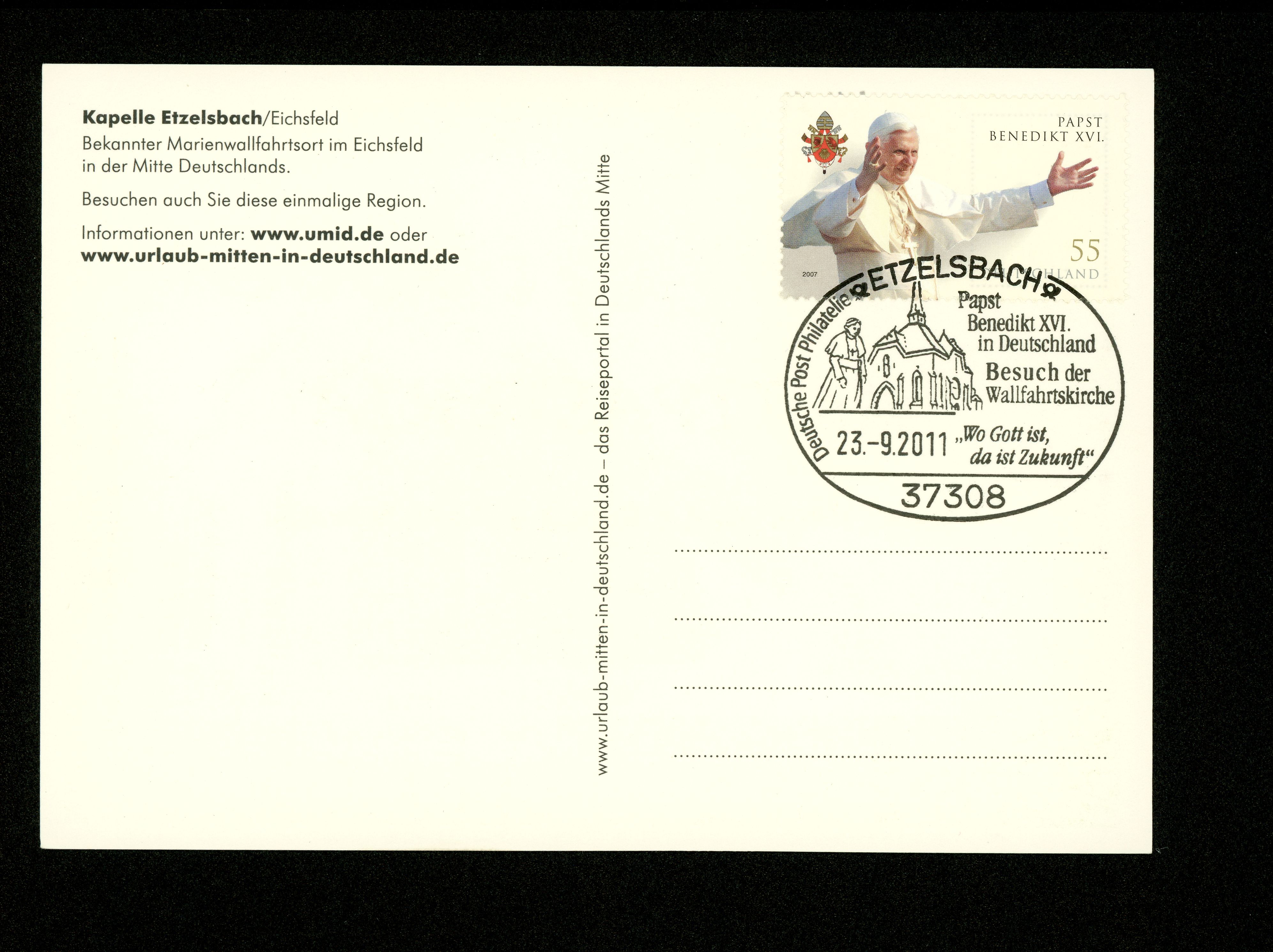 Zur Erinnerung an den Besuch von Papst Benedikt XVI. am 23.9.2011 in der Wallfahrtskapelle Etzelsbach/Eichsfeld