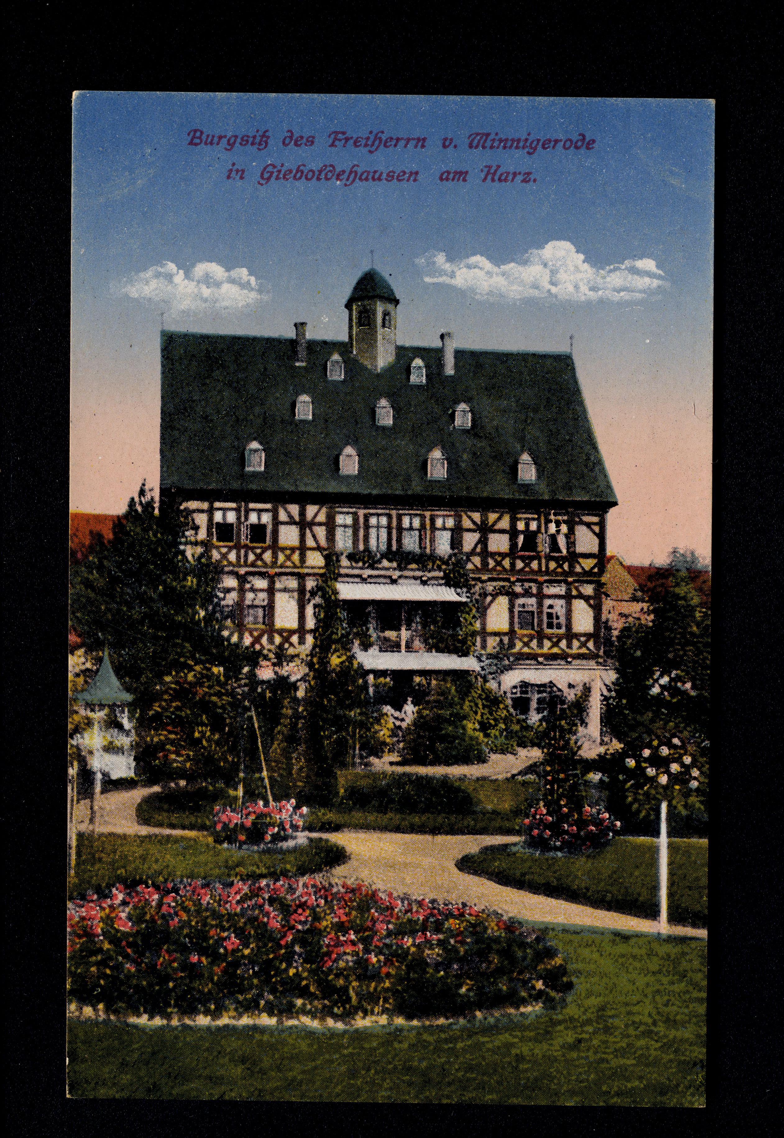 Ort Gieboldehausen Motive Burgsitz des Freiherrn v. Minnigerode in Gieboldehausen am Harz Format klein Verlag Hermann Bierwirth, Gieboldehausen Bestell- oder Individualnummer 9301 Tags Schloss Gieboldehausen