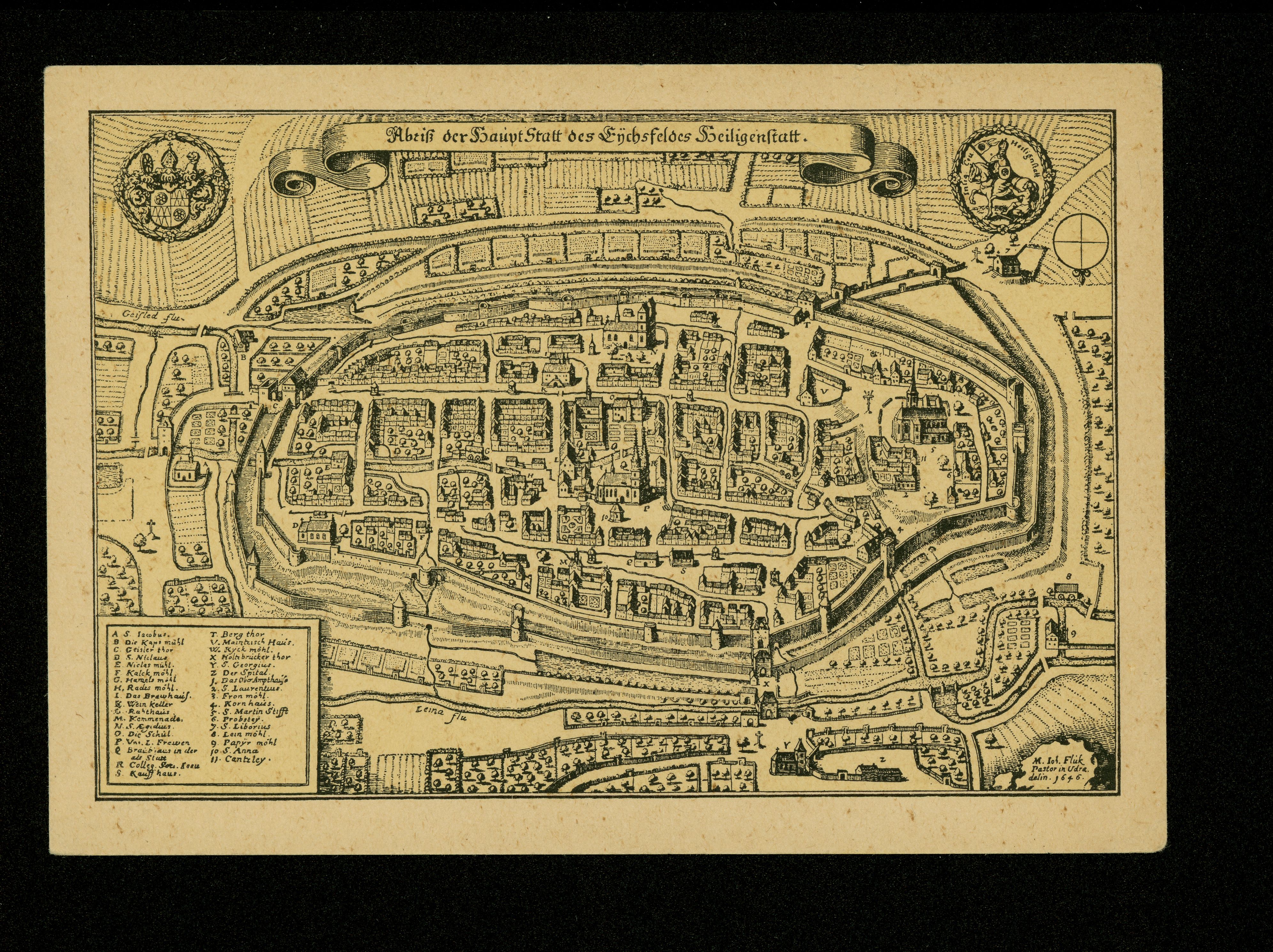 Ort Heiligenstadt Beschreibung Abriß der Stadt von 1646 Motive Stadtplan von Alt-Heiligenstadt von Pastor Fluk in Uder aus dem Jahre 1646 Format groß Verlag Egon Wetzel, Heiligenstadt Bestell- oder Individualnummer B 0229 Tags Landkarte