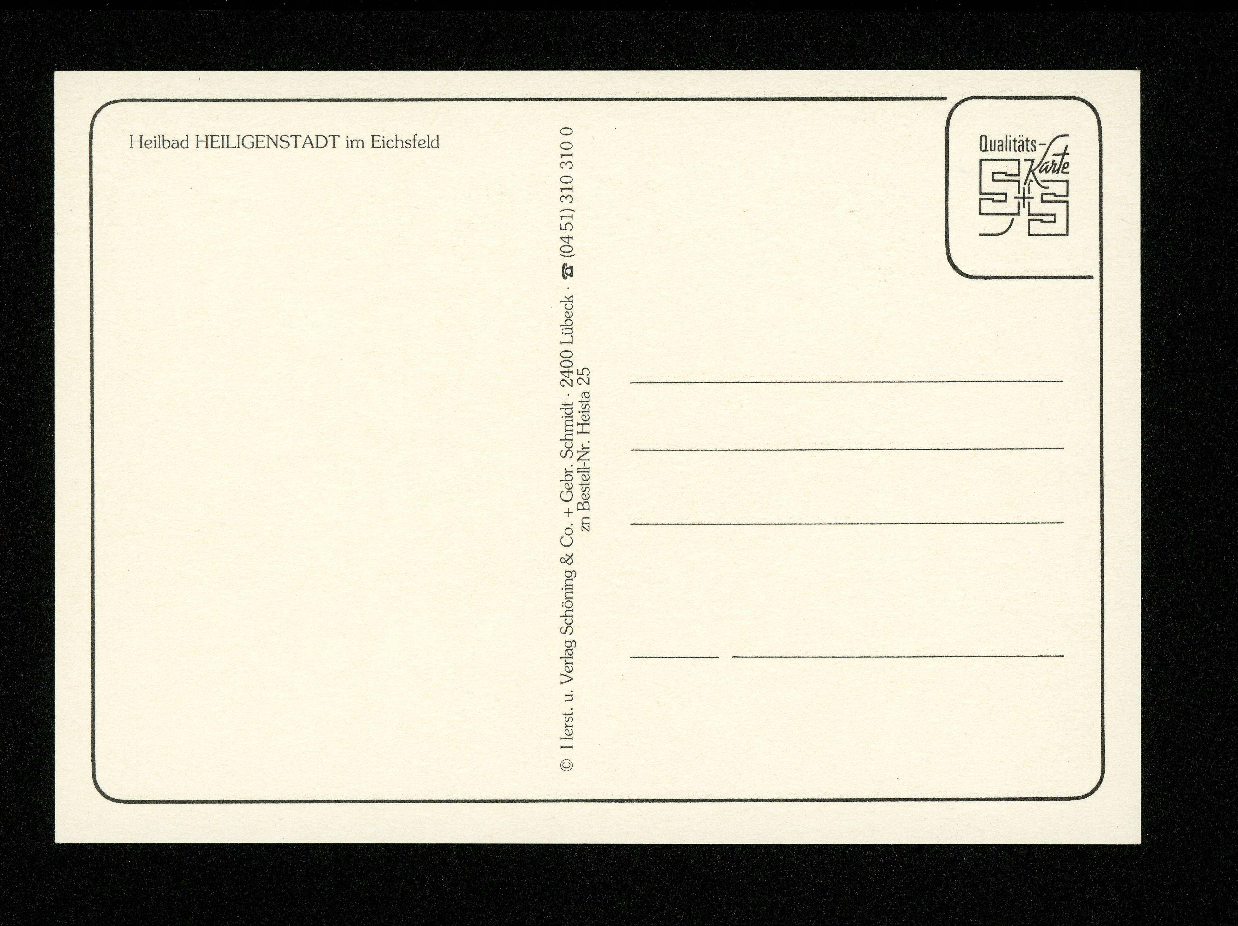 Ort Heiligenstadt Motive Wihelmstraße Übersicht Am Berg Mainzer Haus Heinrich-Heine-Park Klausmühle Format groß Verlag Chr. Schöning & Co., Lübeck (+ Gebrüder Schmidt) Bestell- oder Individualnummer zn Bestell-Nr. Heista 25