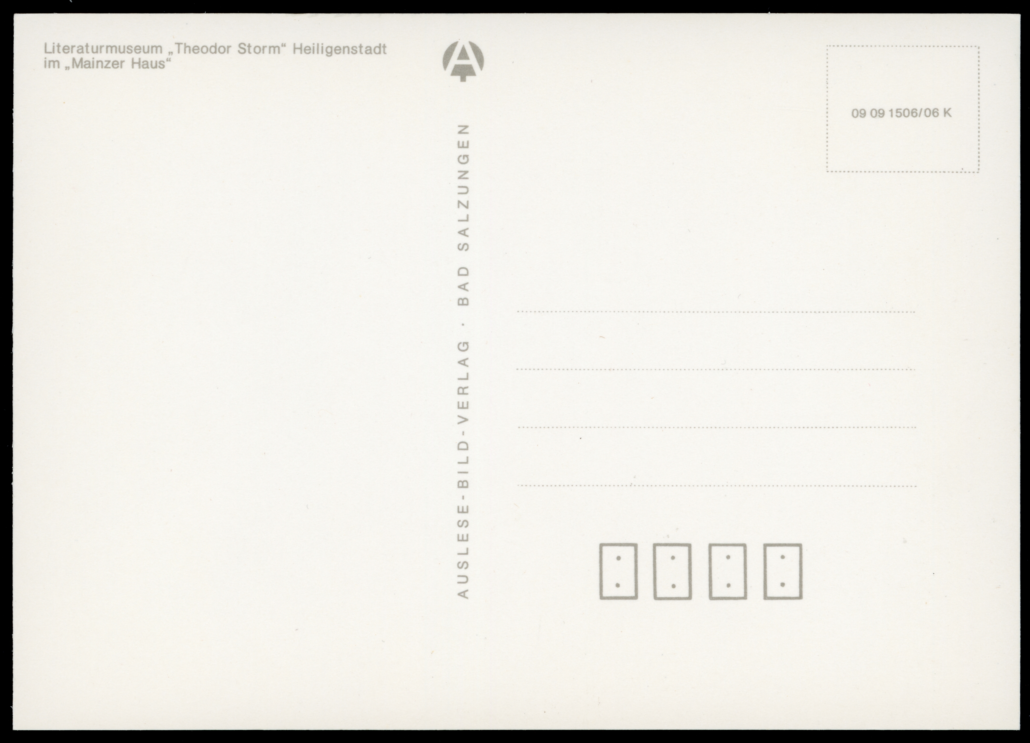 Ort Heiligenstadt Motive Literaturmuseum ''Theodor Storm'' Heiligenstadt im Mainzer Haus Format groß Verlag Auslese-Bild-Verlag, Bad Salzungen Bestell- oder Individualnummer 09 09 1506/06 K
