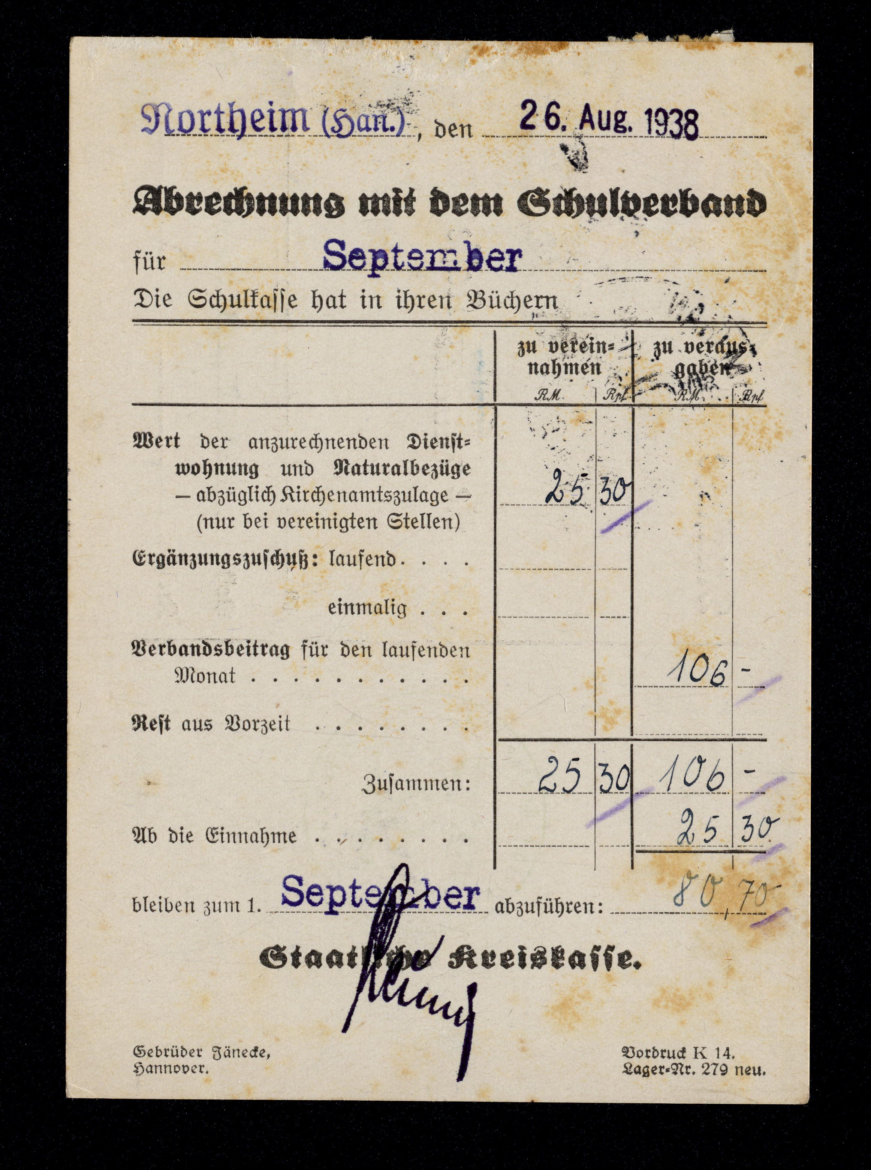 Vordruck K 14. Lager=Nr. 279 neu.