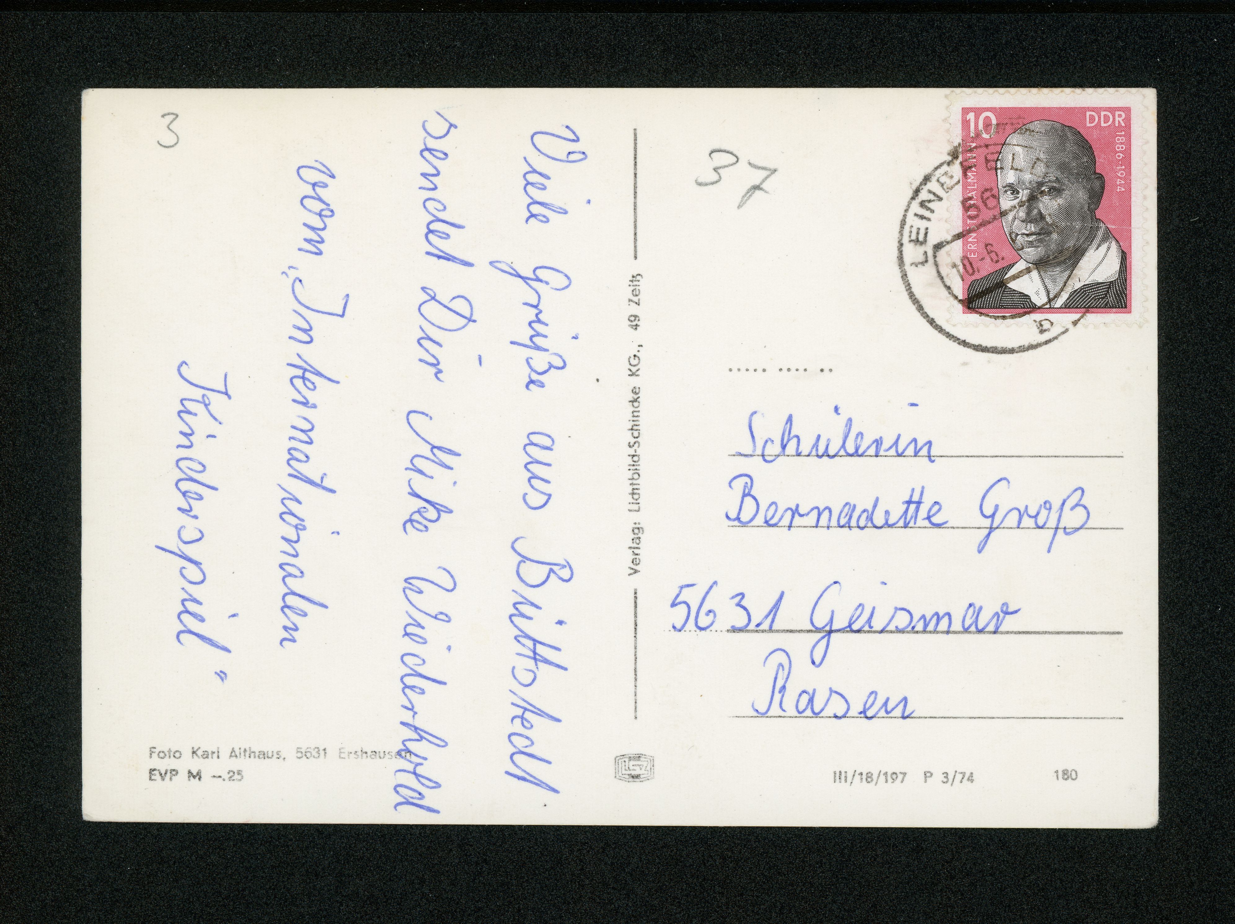 Ort Küllstedt Motive Panorama Format groß Jahr 1974 Verlag Schincke, Zeitz (Lichtbild-Schincke KG) Bestell- oder Individualnummer III/18/197 P 3/74 180 Versanddatum 10.06.1976
