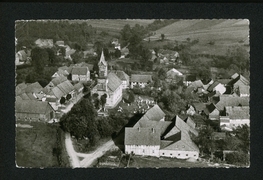 Totalansicht, Pfarrei und Schulen, Gasthof A. Schenke, Kirche, Obere Dorfstrasse |
