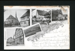 Kirche, Kaufm. Leineweber, Schmiede, Panorama, Küking's Gastwirtschaft |