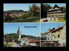 Heyerode Blick zum Ort, Gaststätte ''Grenzhaus'', Teilansicht mit Kirche, Teilansicht