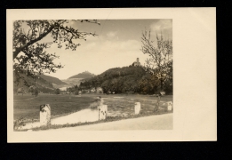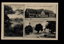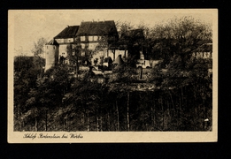 Blick auf Schloss Scharfenstein, Gemeinde-Gasthaus. Inhaber Wilhelm Rosenthal, Kloster-Gut Beuren |