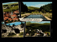 Sieber: Spielplatz ''Große Wiesen'', Scharzfeld: Einhornhöhle, Herzberg: Schloss, Juessee, Lonau: Ortsansicht, Pöhlde: Rhumequelle |