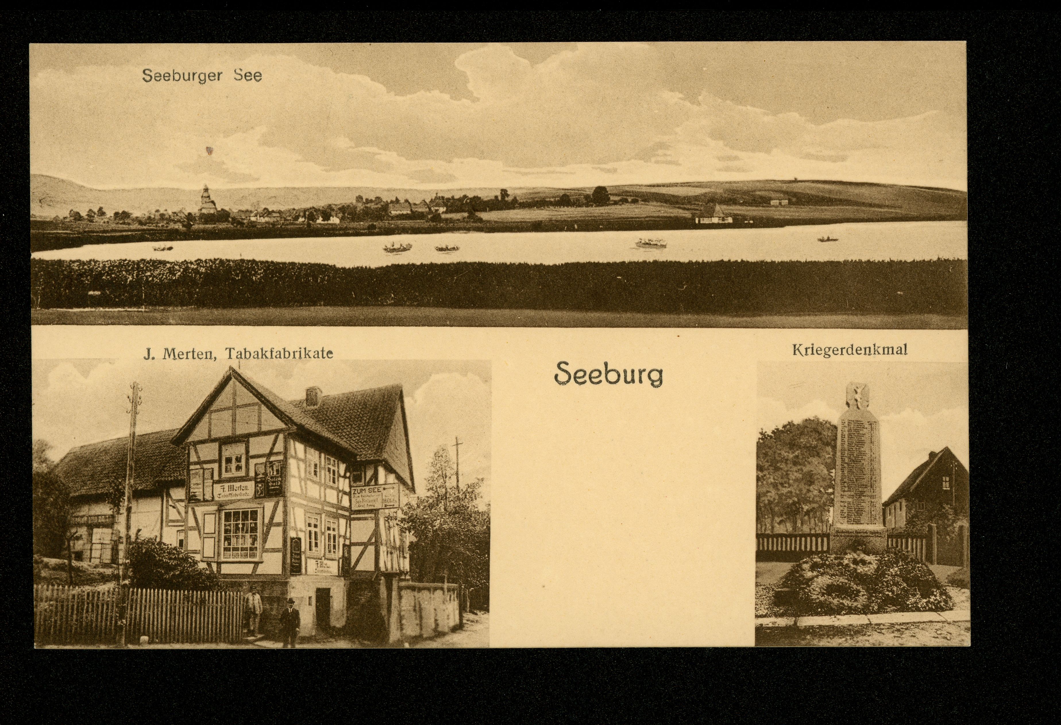 Ort Seeburg Beschreibung Variante "braun/hell" Motive Seeburger See J. Merten, Tabakfabrikate Kriegerdenkmal Format klein Verlag Wilhelm Schödtensack, Wolkramshausen Bestell- oder Individualnummer B 24