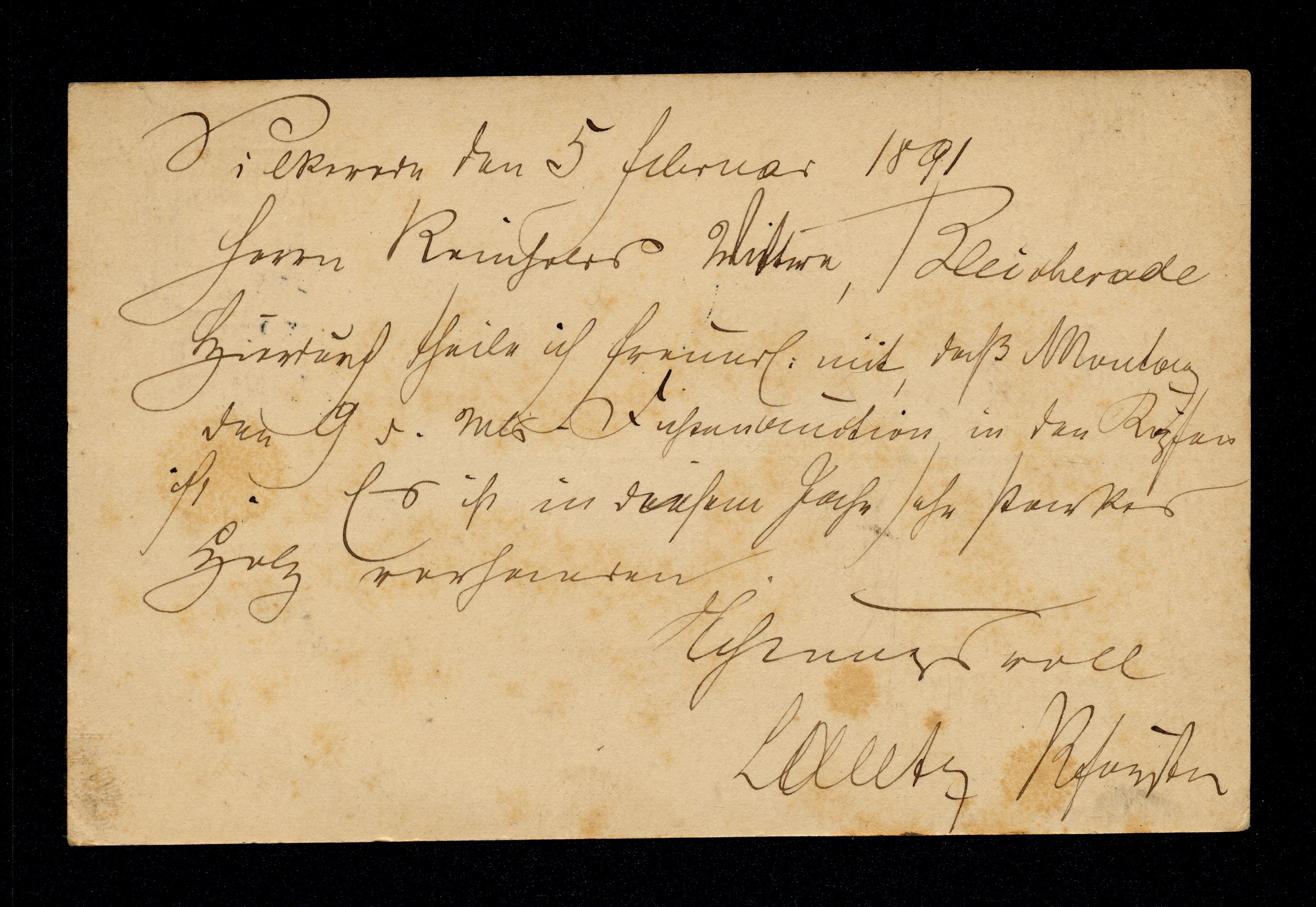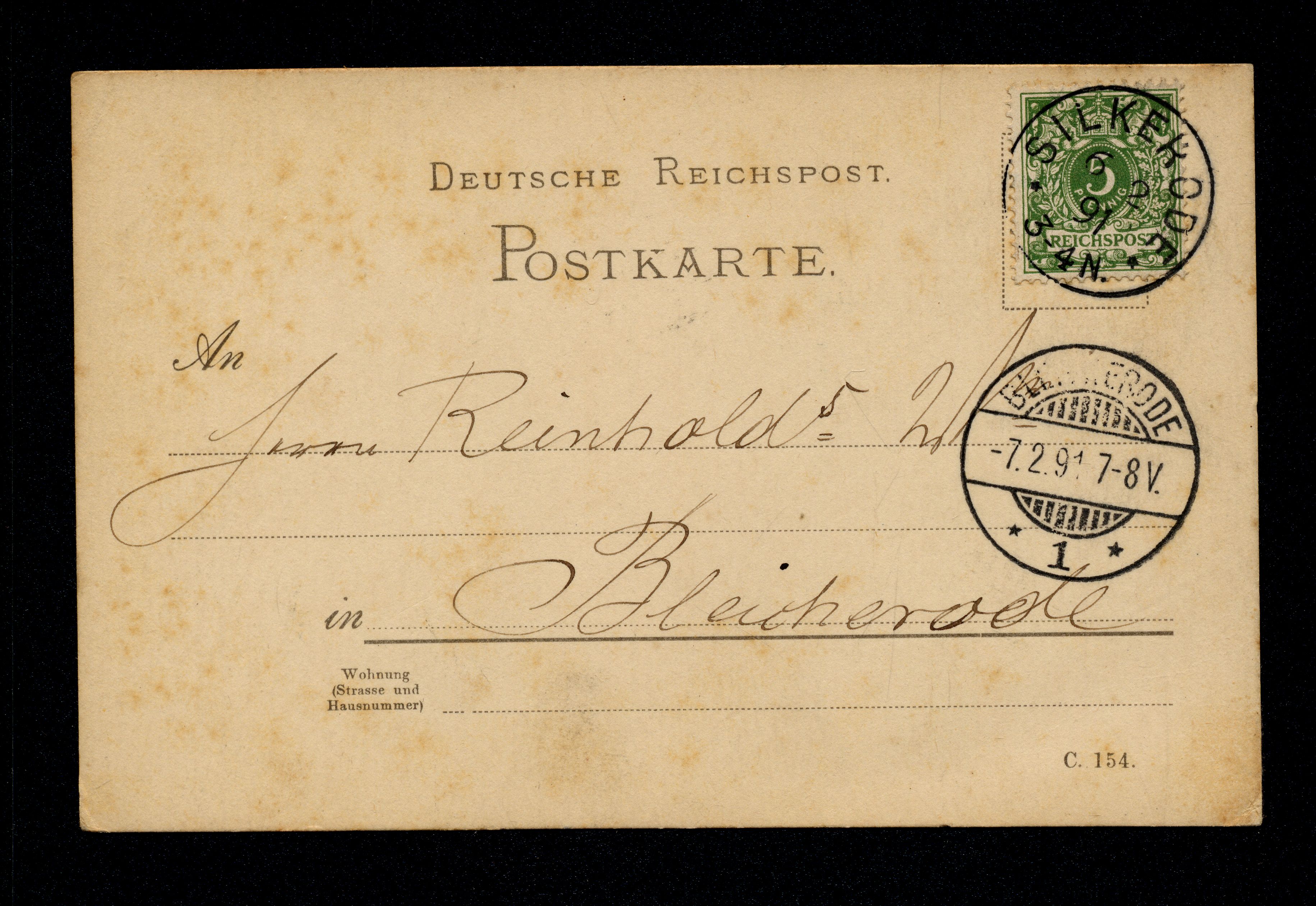 Ort Silkerode Motive Postkarte Silkerode -> Bleicherode Format klein Jahr 1891 Verlag - Bestell- oder Individualnummer - Versanddatum 06.02.1891