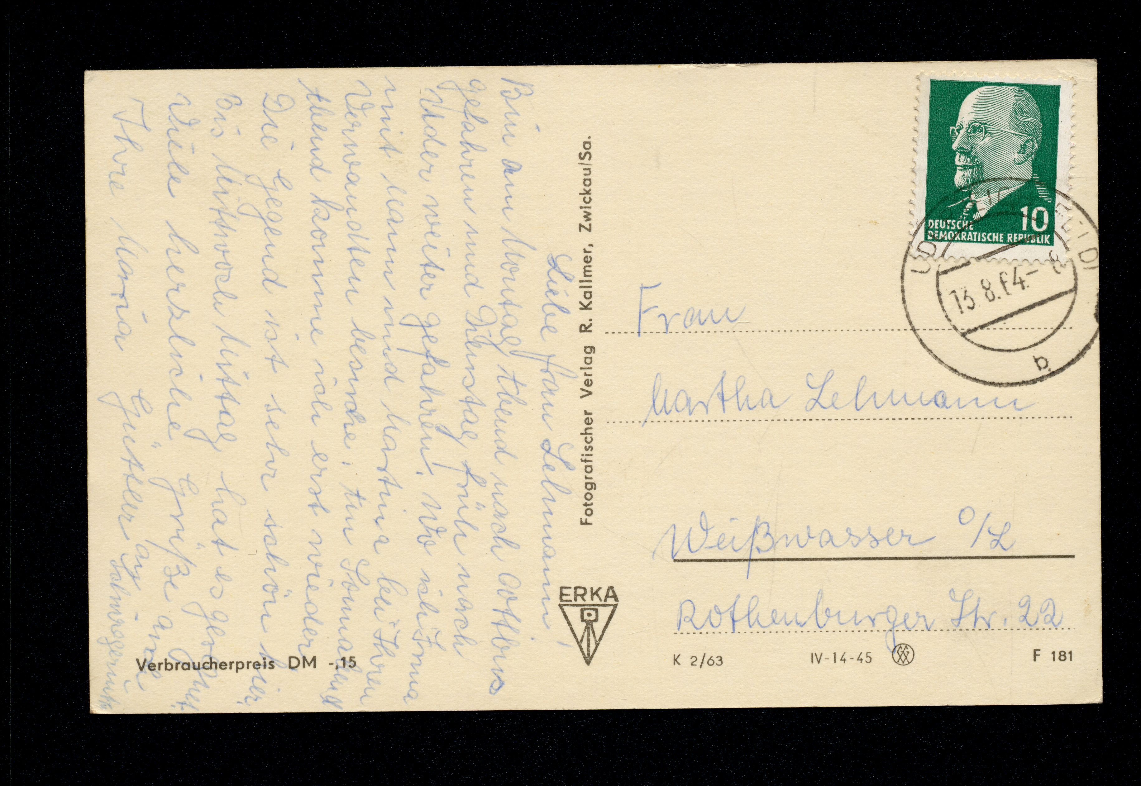 Ort Uder Motive Panorama Format klein Jahr 1963 Verlag Reinh. Kallmer, Zwickau / Sa. (Reinhard Kallmer) Bestell- oder Individualnummer K 2/63 IV-14-45 F 181 Versanddatum 13.08.1964