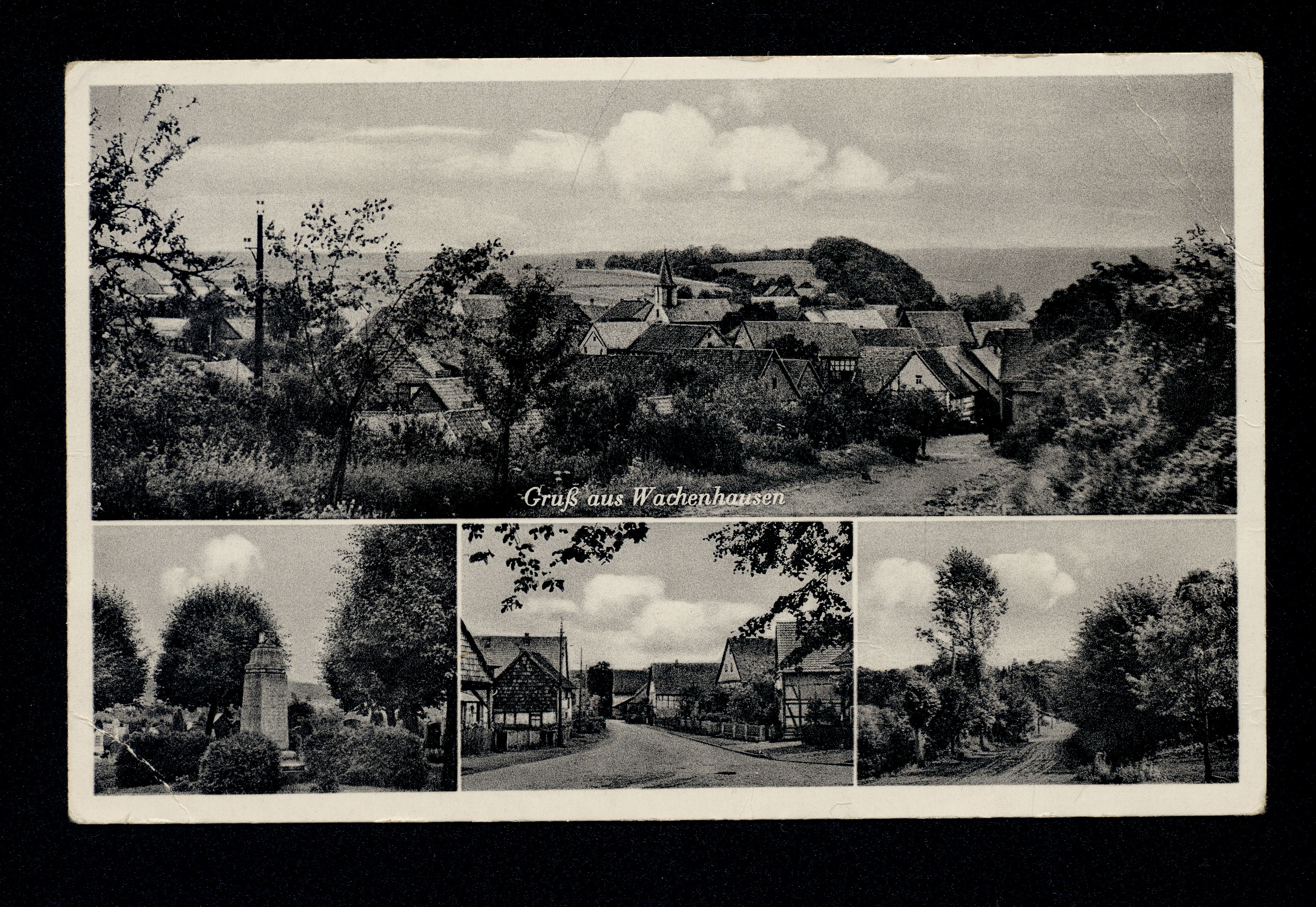 Ort Wachenhausen Motive Teilansicht Kriegerdenkmal Straßenansicht Feldweg Format klein Jahr 1959 Verlag Adolf Becker, Braunschweig Bestell- oder Individualnummer -