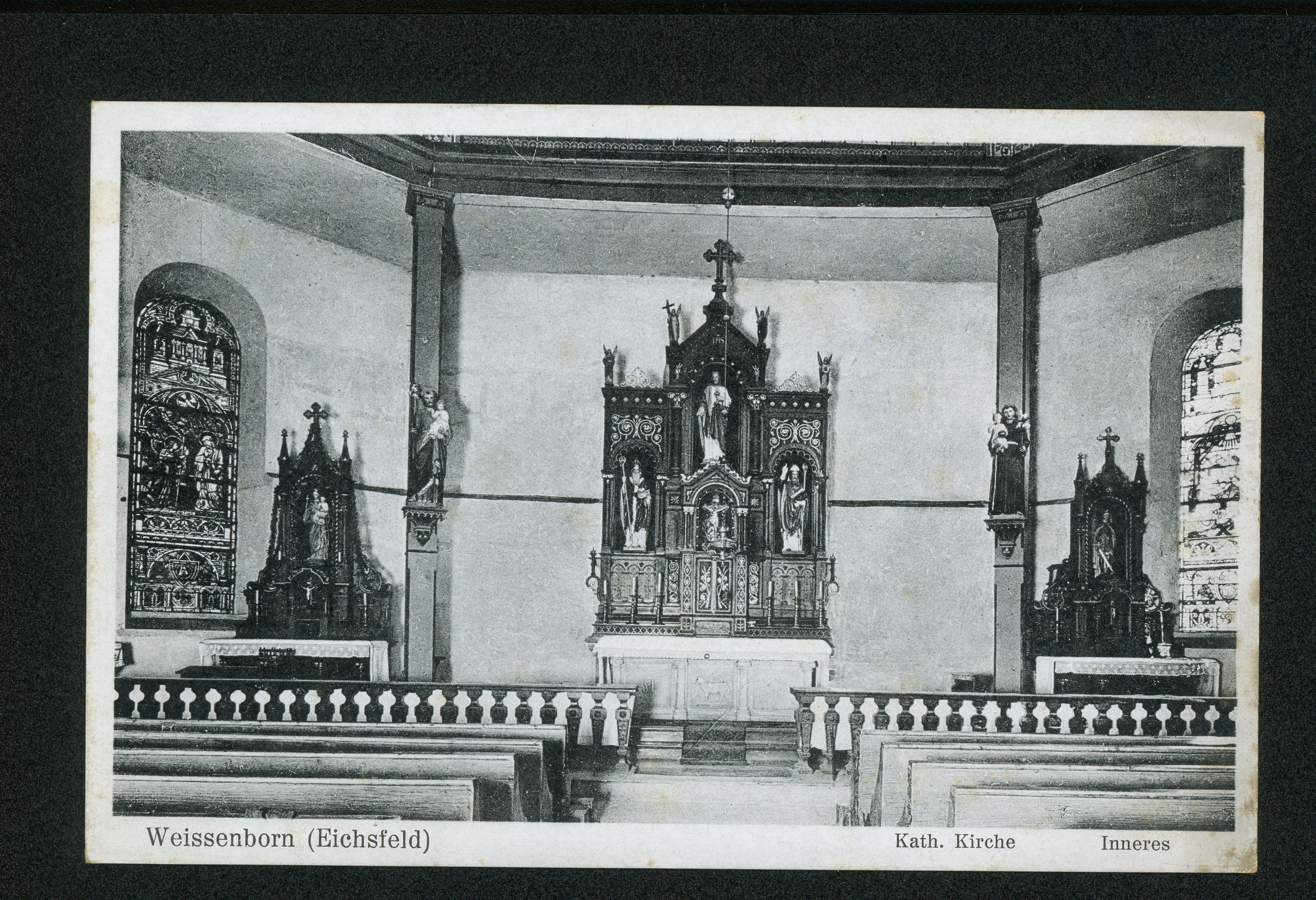 Ort Weißenborn-Lüderode Motive Kath. Kirche Inneres Format klein Verlag Willy Flächsner, Frankfurt a. M. Bestell- oder Individualnummer No. 1052 Tags Spendenkarte