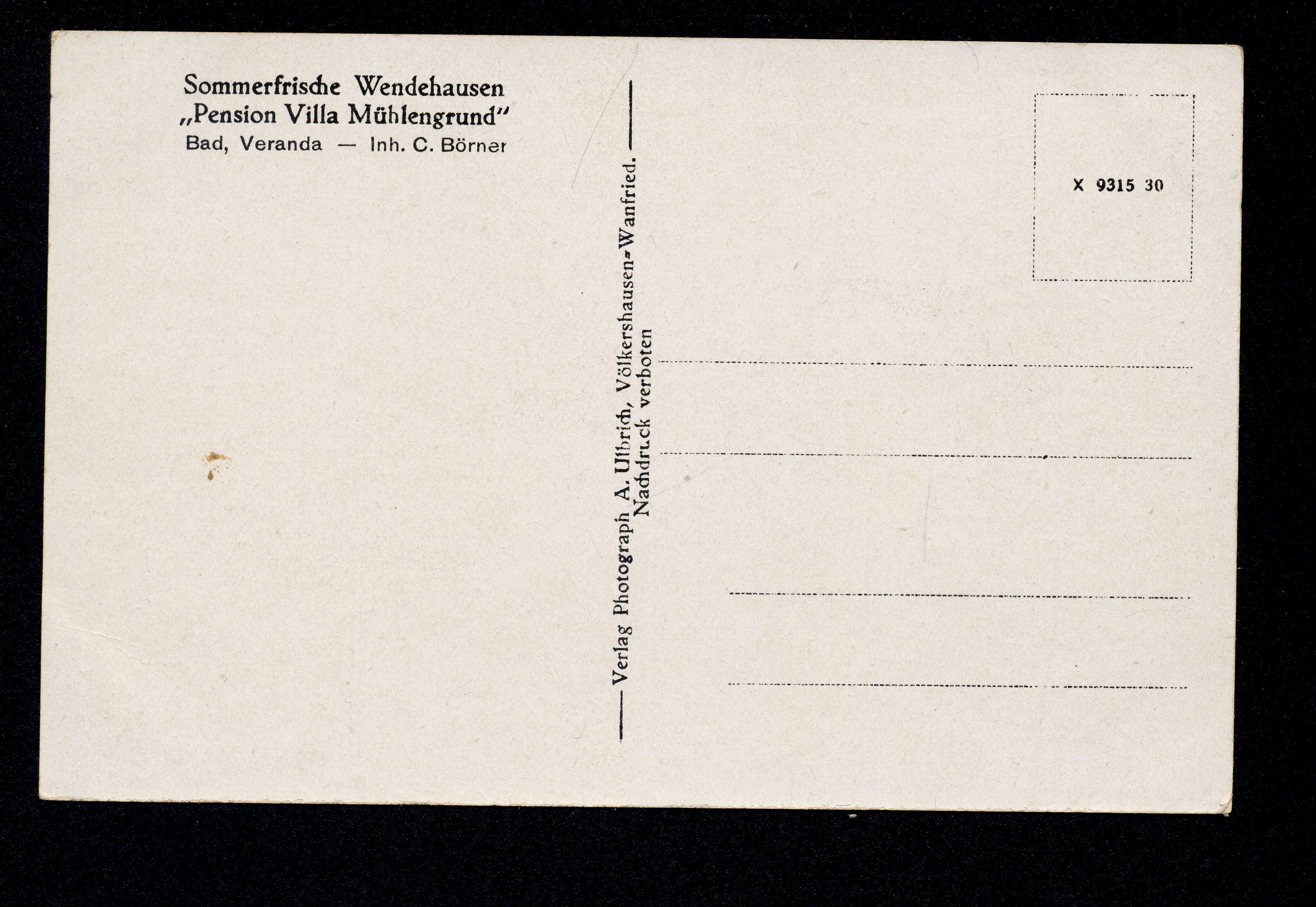 Ort Wendehausen Motive ''Pension Villa Mühlengrund'' Inh. C. Börner Format klein Verlag Alfred Ulbrich, Völkershausen-Wanfried (A. Ulbrich) Bestell- oder Individualnummer X 9315 30