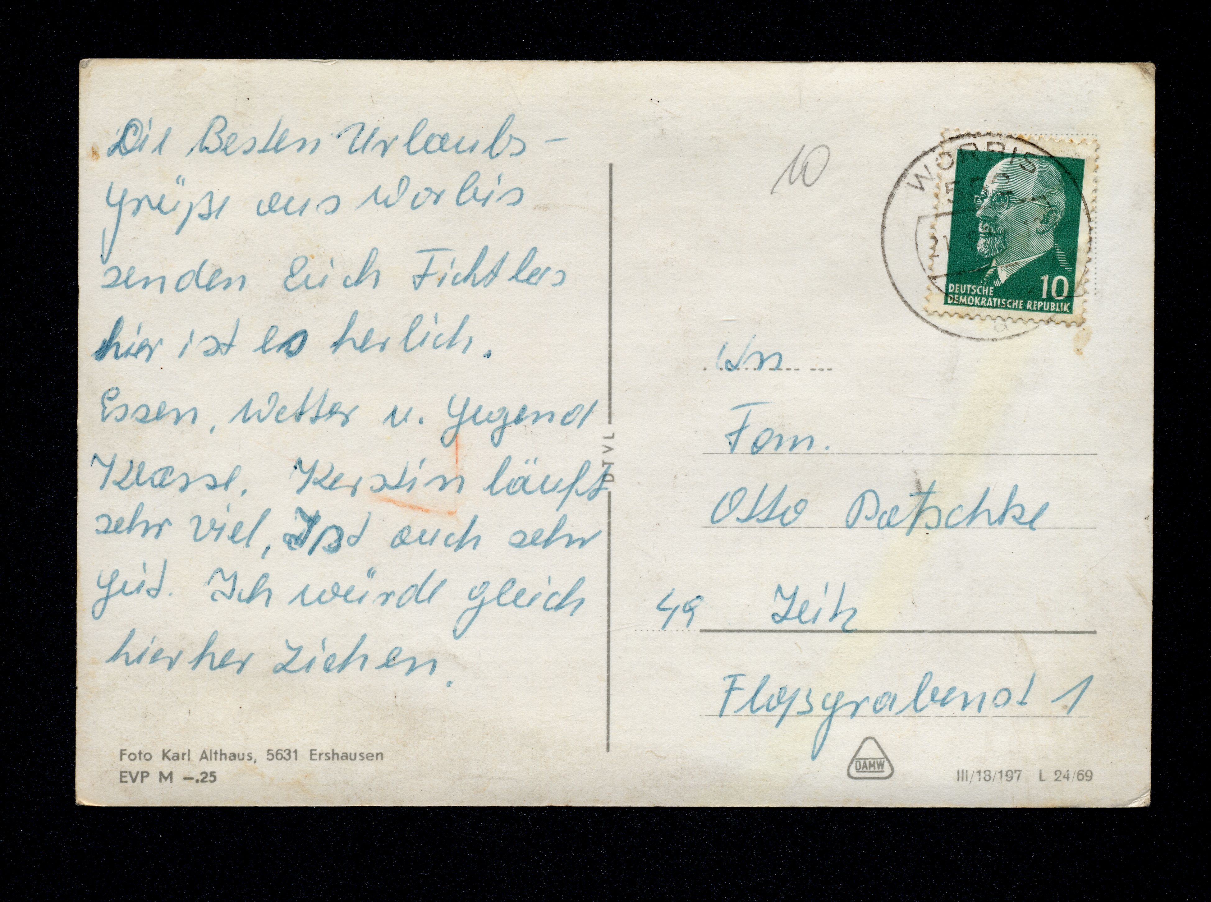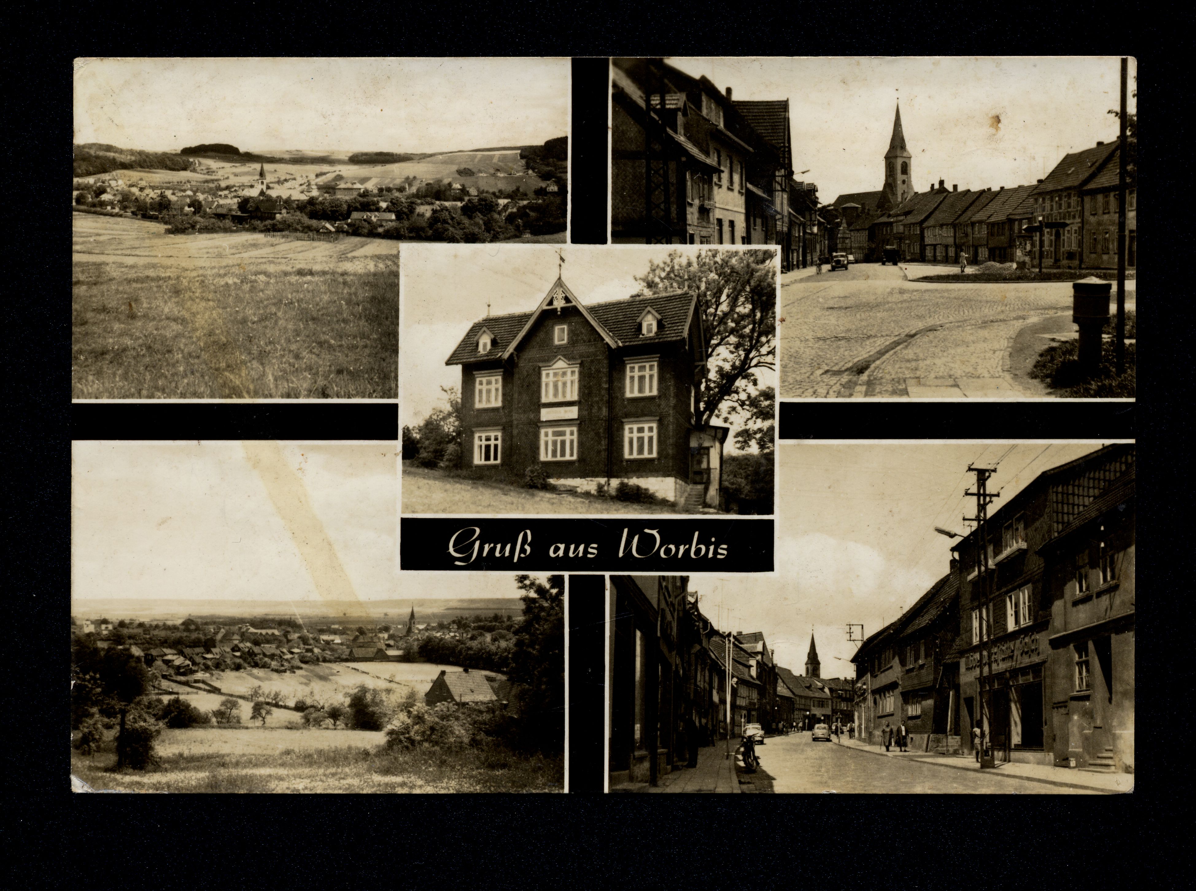 Ort Worbis Motive Panorama Straßenansicht Untere Langestraße Restaurant Iberg Format groß Jahr 1969 Verlag Karl Althaus, Ershausen Bestell- oder Individualnummer III/18/197 L 24/69 Tags Gasthaus