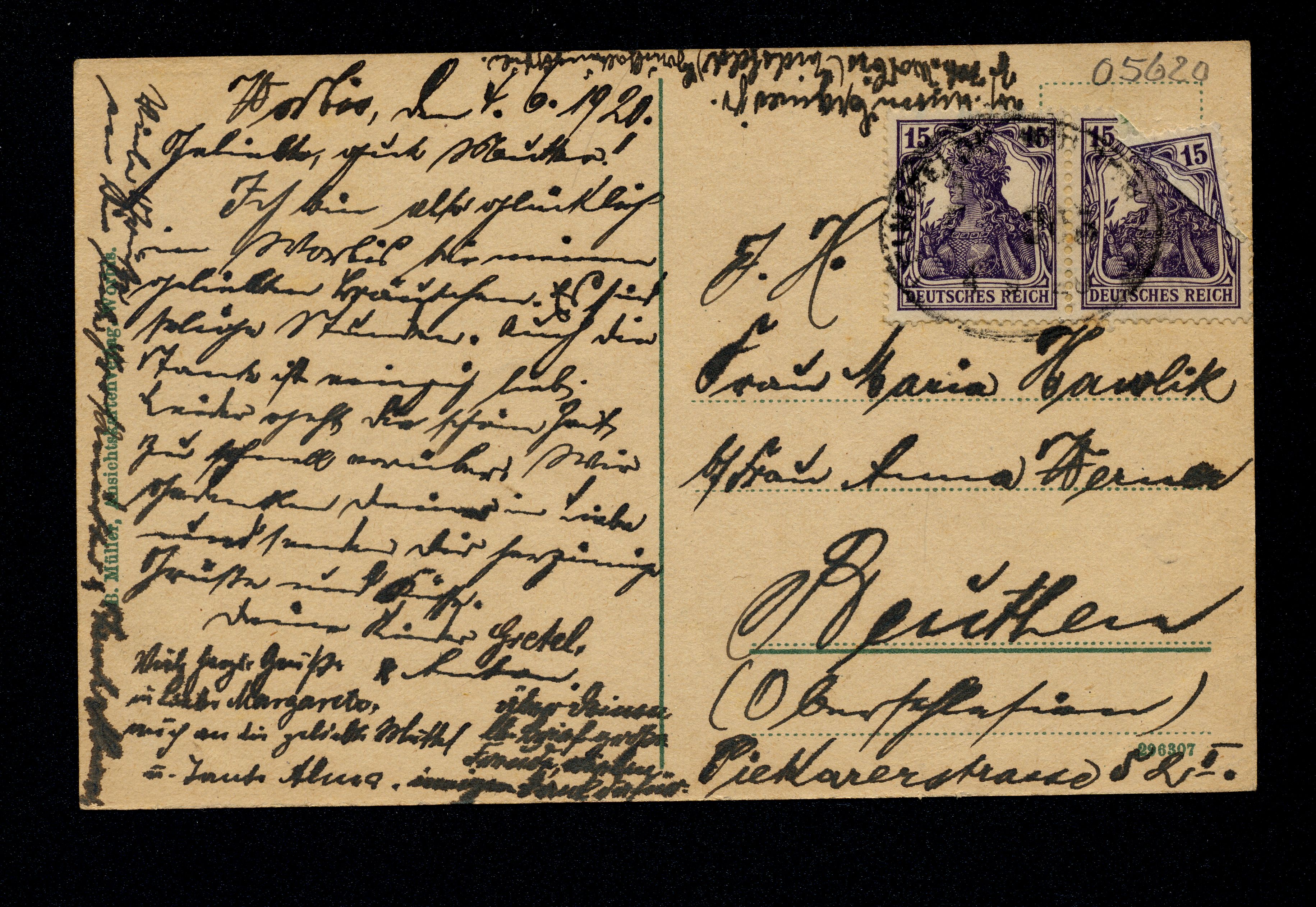 Ort Worbis Motive Oberstadt Format klein Jahr 1920 Verlag B. Müller, Worbis Bestell- oder Individualnummer 296307 Versanddatum 04.06.1920 Tags Heddergott Herrenkleidermacher