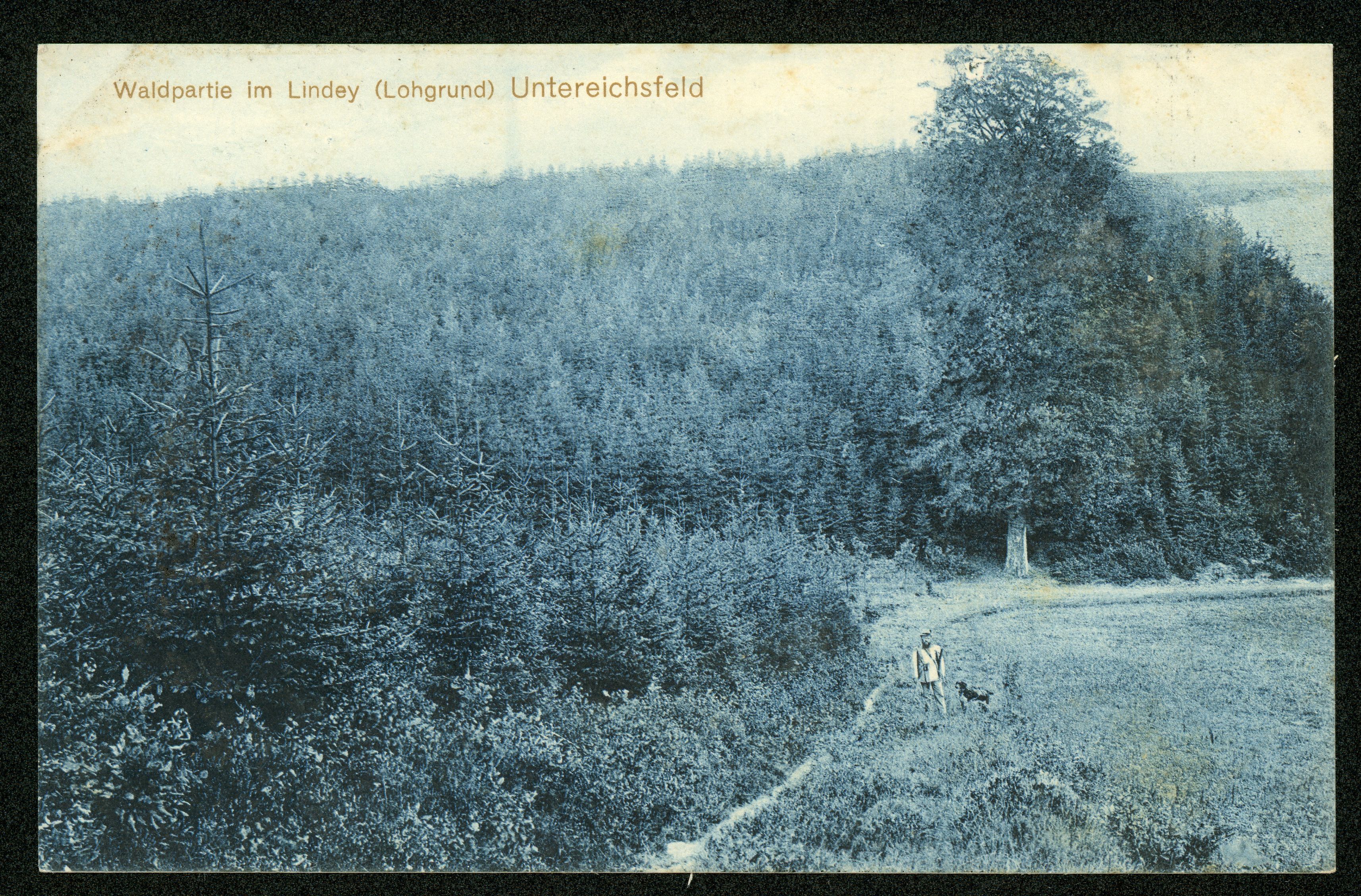 Ort Bernterode (Breitenworbis) Beschreibung Variante "blau" Sammlung: H.M.D. Motive Waldpartie im Lindey (Lohgrund) Format klein Verlag Aloys Mecke, Duderstadt Bestell- oder Individualnummer n 72