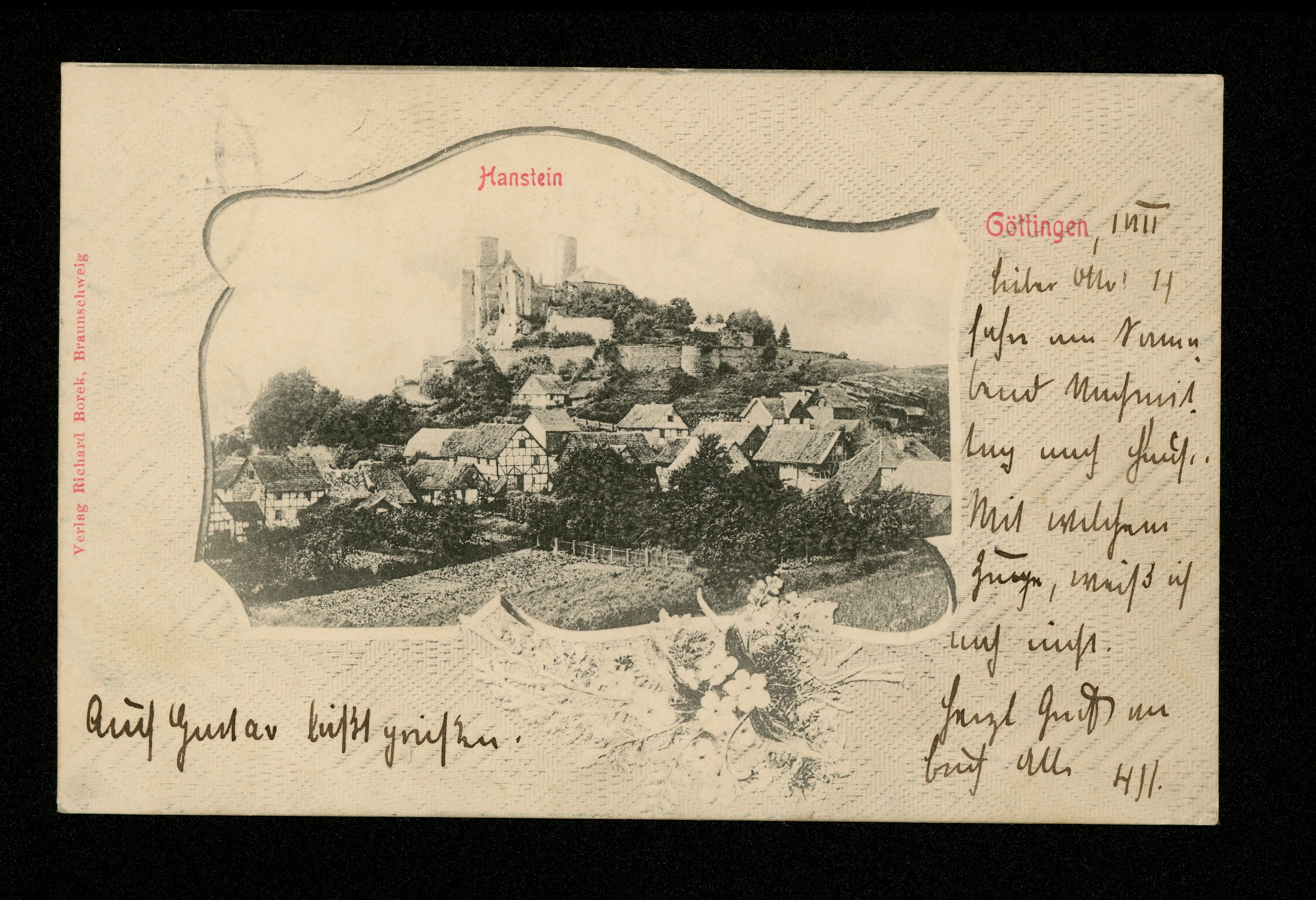 Ort Bornhagen Motive Hanstein Format klein Jahr 1902 Verlag Richard Borek, Braunschweig Bestell- oder Individualnummer - Versanddatum 01.08.1902 Tags Burg Hanstein