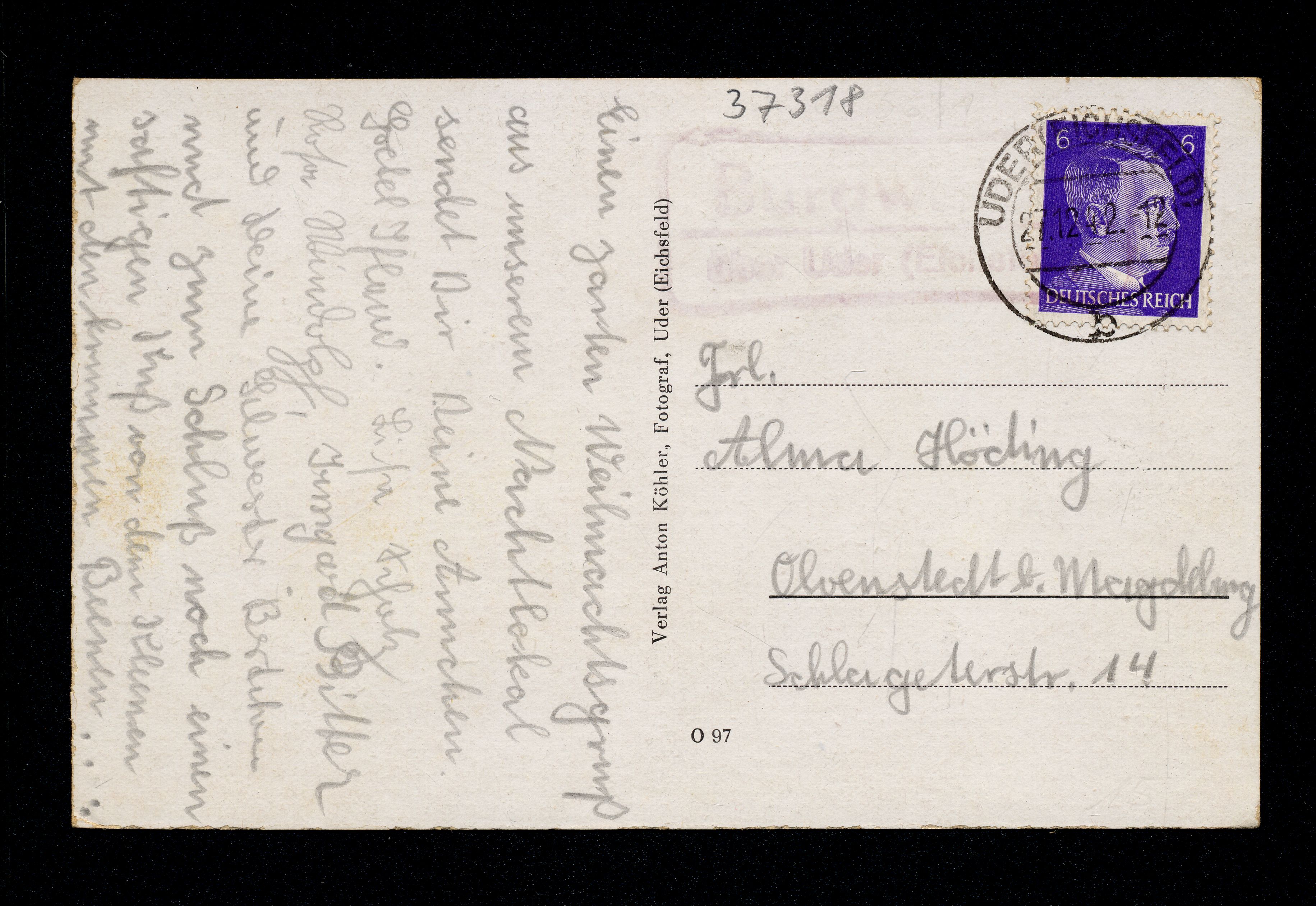 Ort Burgwalde Motive Totalansicht Gastwirtschaft zum weißen Roß Inhaber August Arand Format klein Jahr 1942 Verlag Anton Köhler, Uder Eichsfeld Versanddatum 27.12.1942 Tags O 97