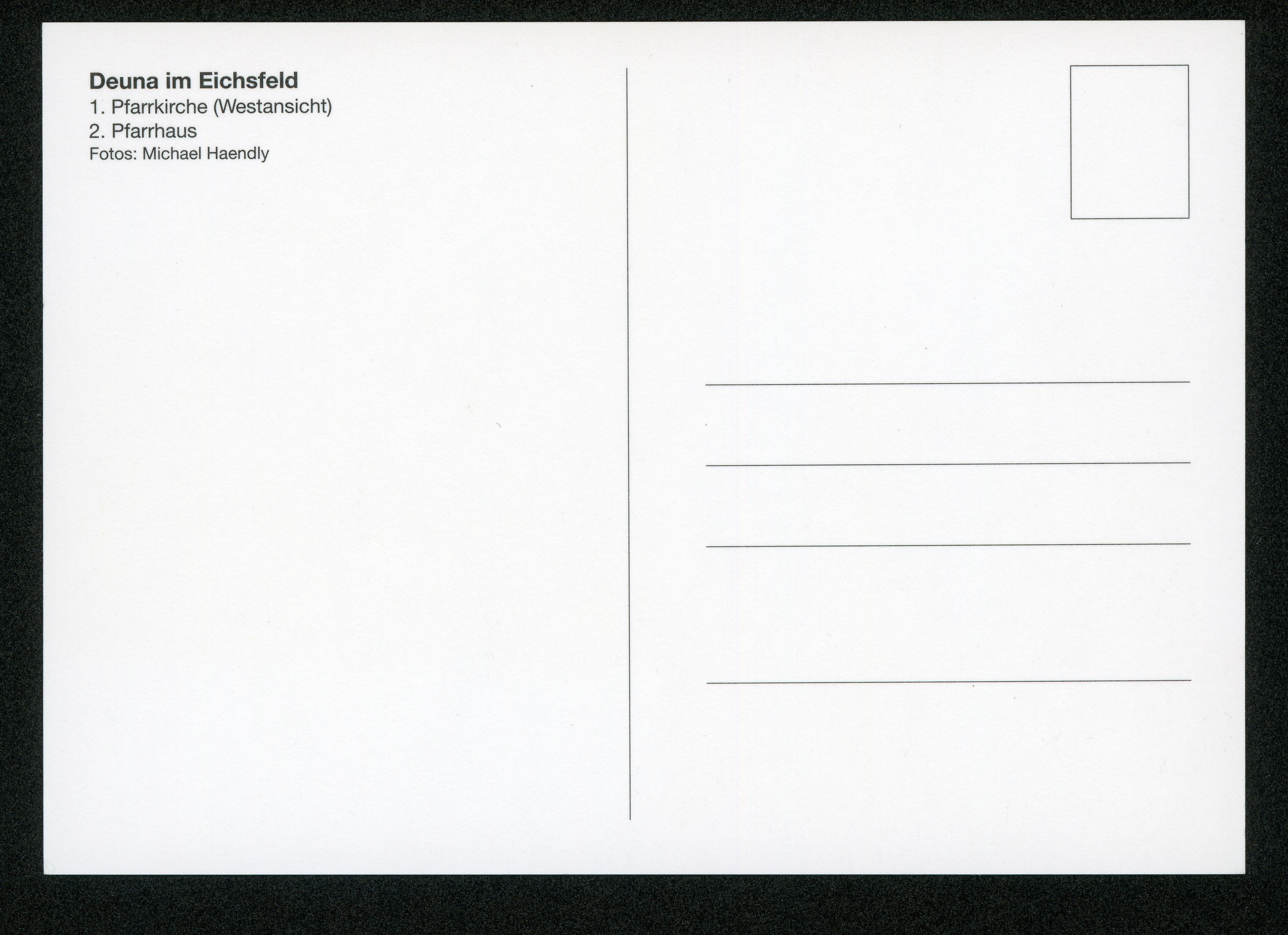 Ort Deuna Motive Pfarrkirche (Westansicht) Pfarrhaus Format groß Verlag Michael Haendly Bestell- oder Individualnummer -