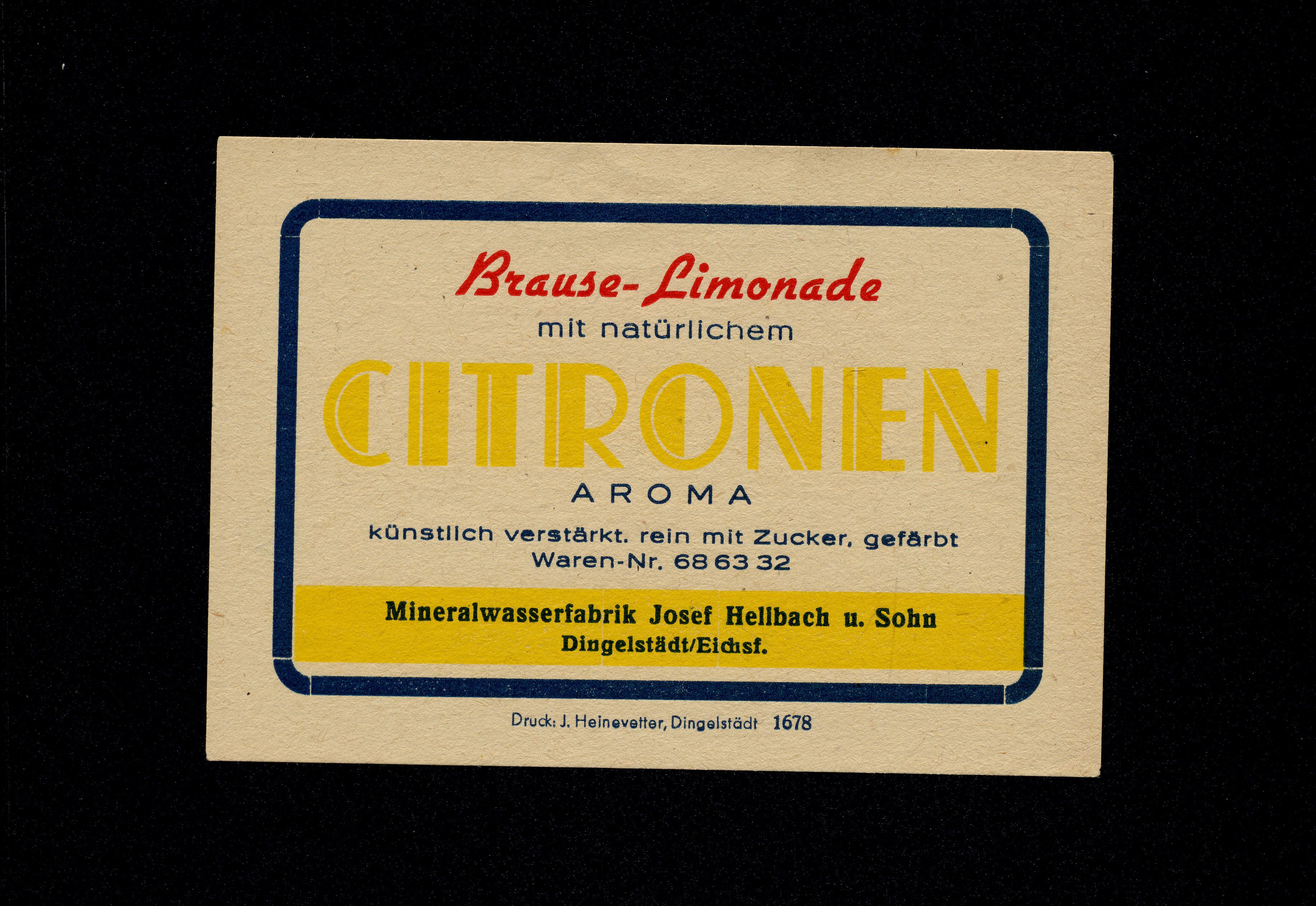 Ort Dingelstädt - Belege Beschreibung Etikett aus Papier Motive Mineralwasserfabrik Josef Hellbach & Sohn Format Sonderformat Verlag Josef Heinevetter, Dingelstädt Bestell- oder Individualnummer 1678