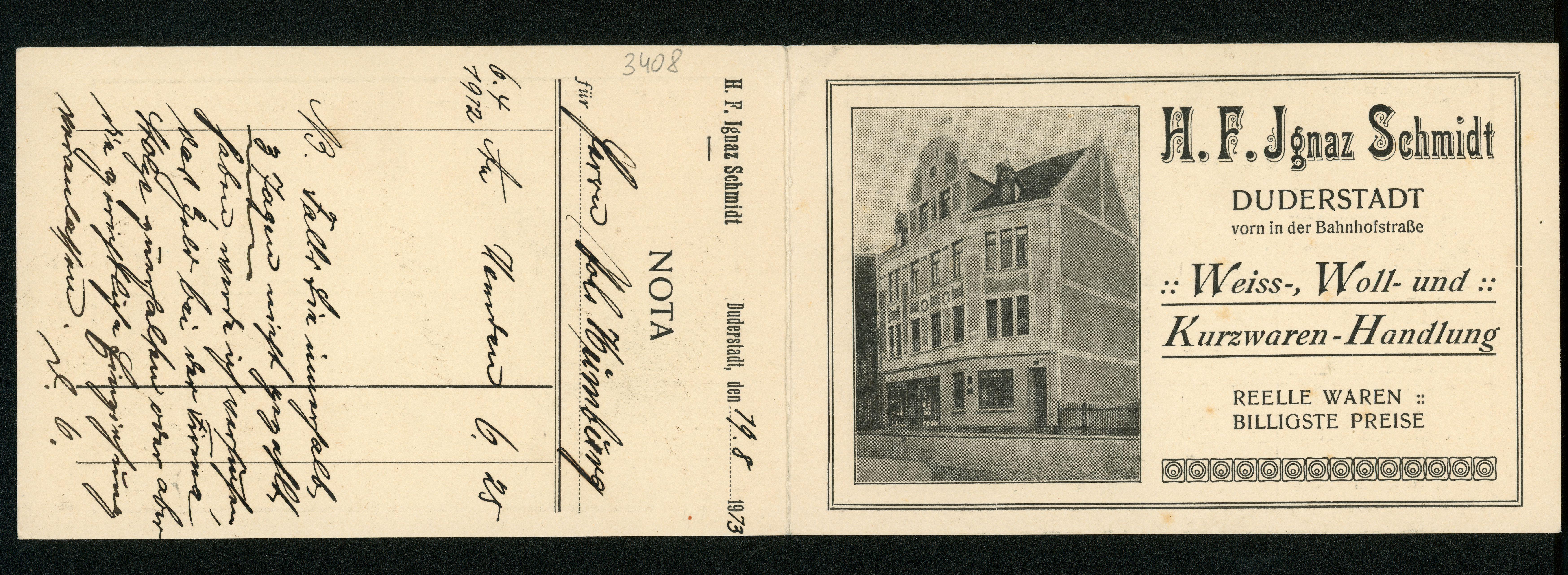 Beleg zum Aufklappen im Postkartenformat