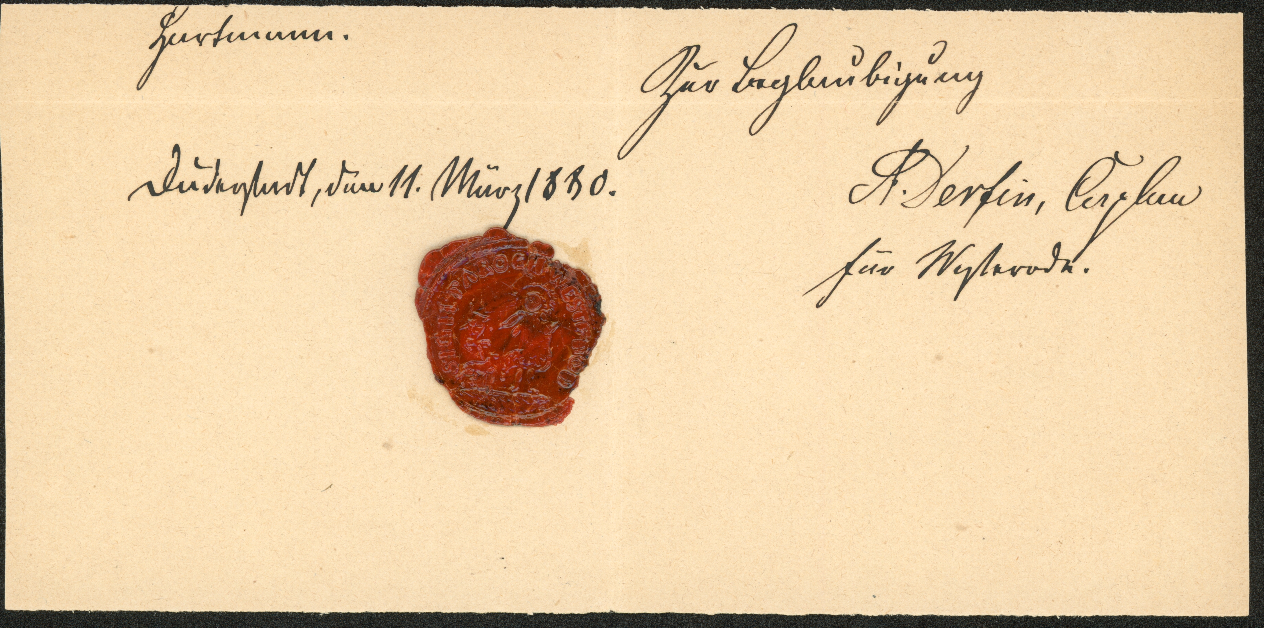 Ort Duderstadt - Belege Motive Wachssiegel Format Sonderformat Jahr 1880 Verlag - Bestell- oder Individualnummer - Versanddatum 11.03.1880
