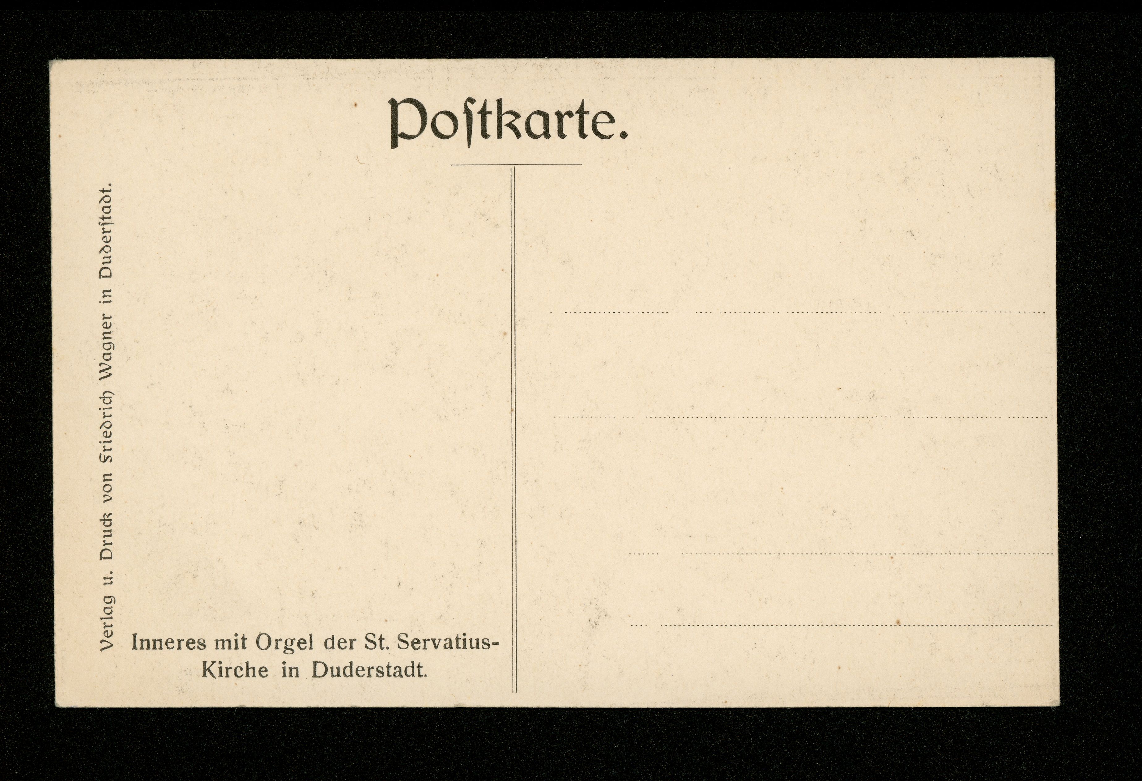 Ort Duderstadt Beschreibung Variante Motive Inneres mit Orgel der St. Servatius-Kirche in Duderstadt Format klein Verlag Friedrich Wagner, Duderstadt Bestell- oder Individualnummer -