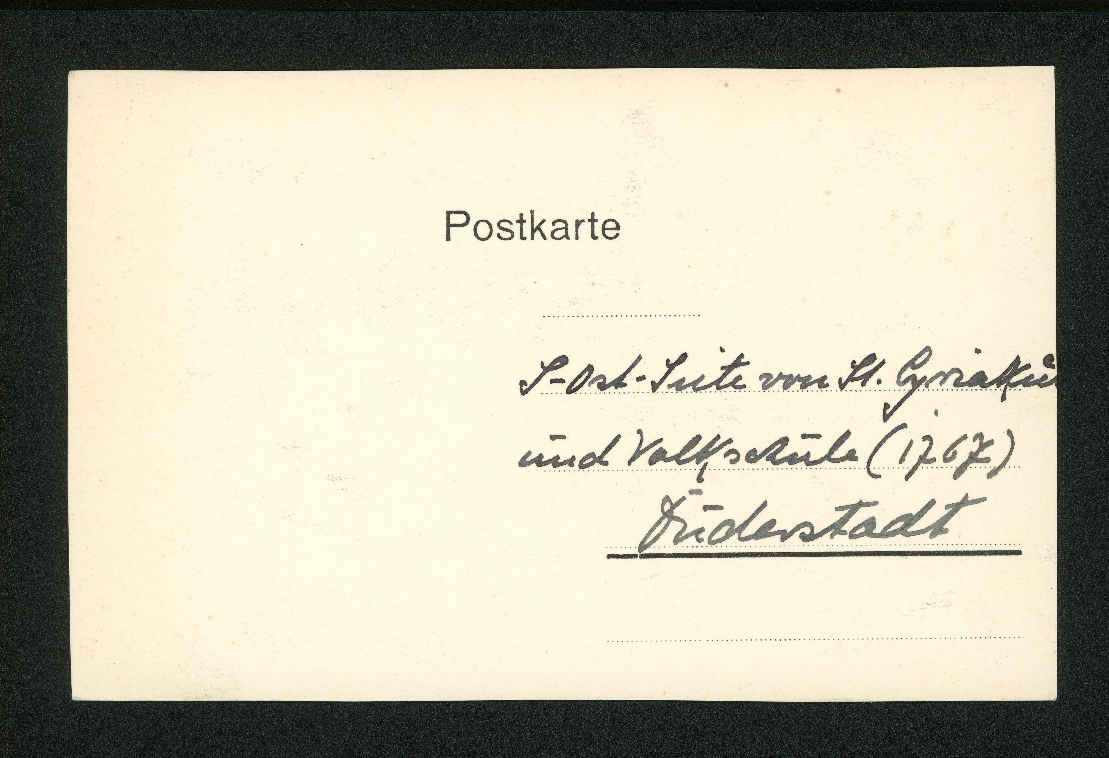 Ort Duderstadt Beschreibung Bild aufgeklebt Motive Süd-Ost-Seite von St. Cyriakus und Volksschule Format klein Verlag - Bestell- oder Individualnummer -