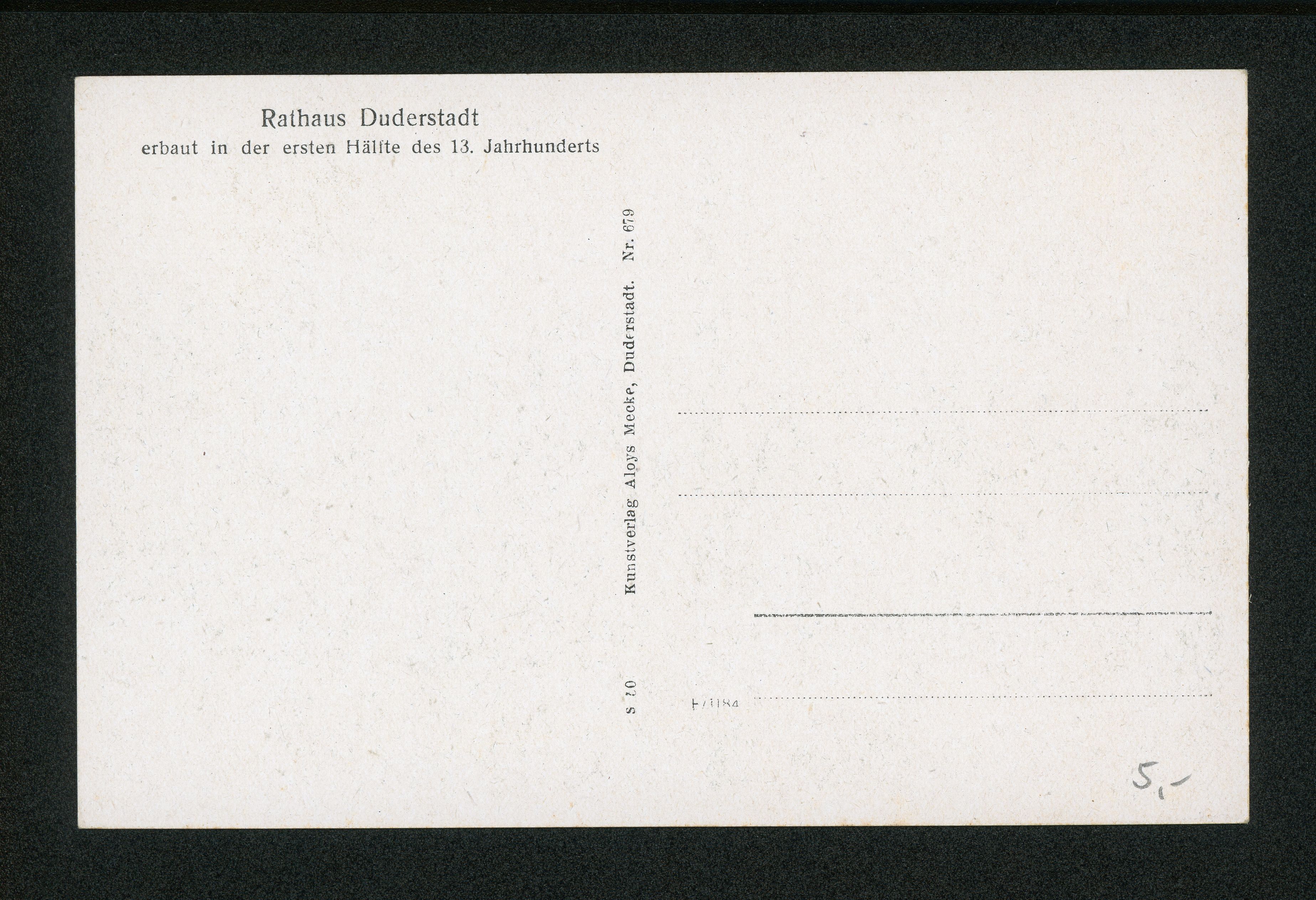 Ort Duderstadt Motive Rathaus Rathaustreppe Format klein Verlag Aloys Mecke, Duderstadt Bestell- oder Individualnummer Nr. 679 S 50