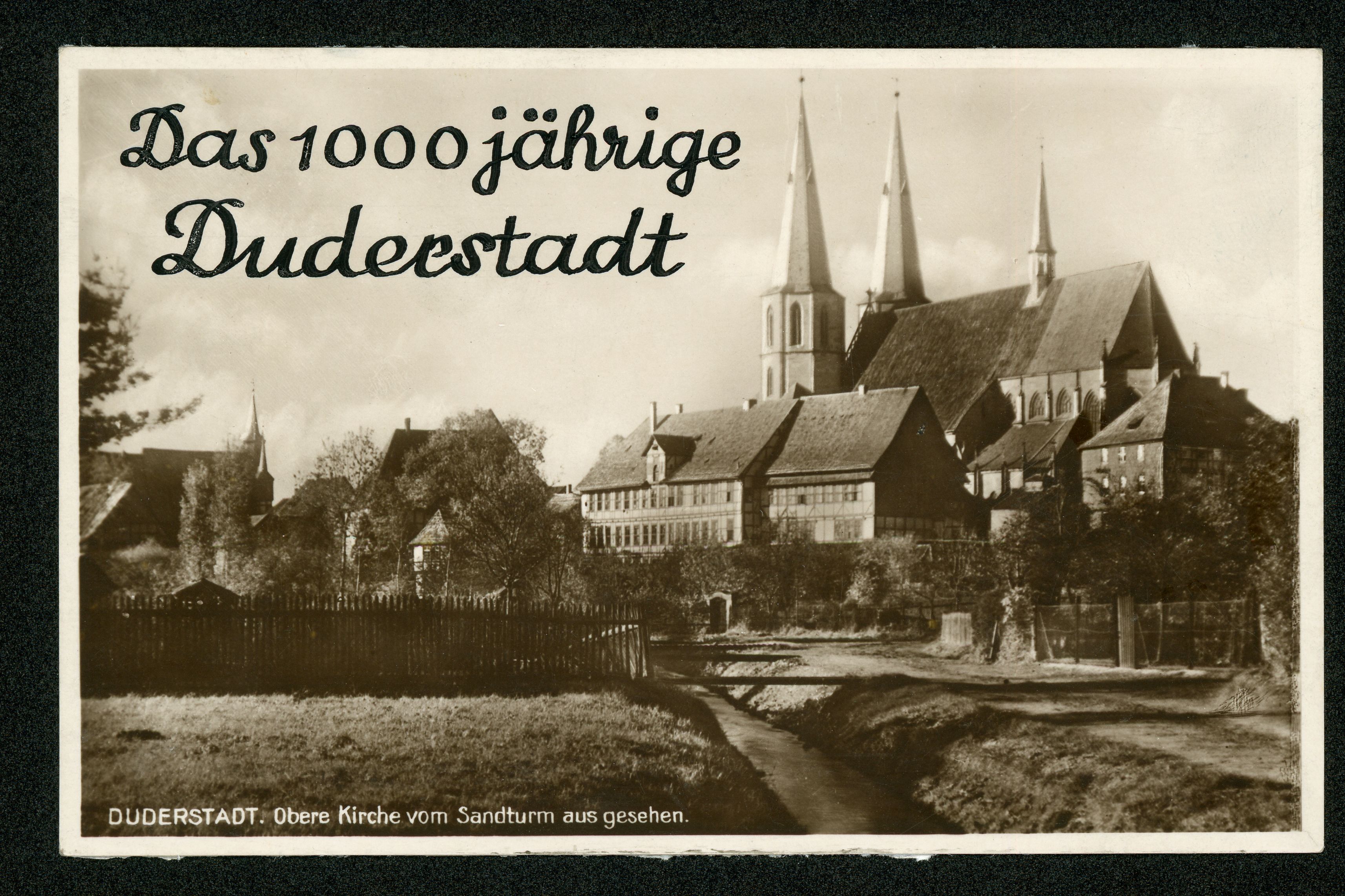 Ort Duderstadt Beschreibung Variante "mit Aufschrift" Motive Obere Kirche vom Sandturm aus gesehen Format klein Verlag Aloys Mecke, Duderstadt Bestell- oder Individualnummer - Tags St. Cyriakus