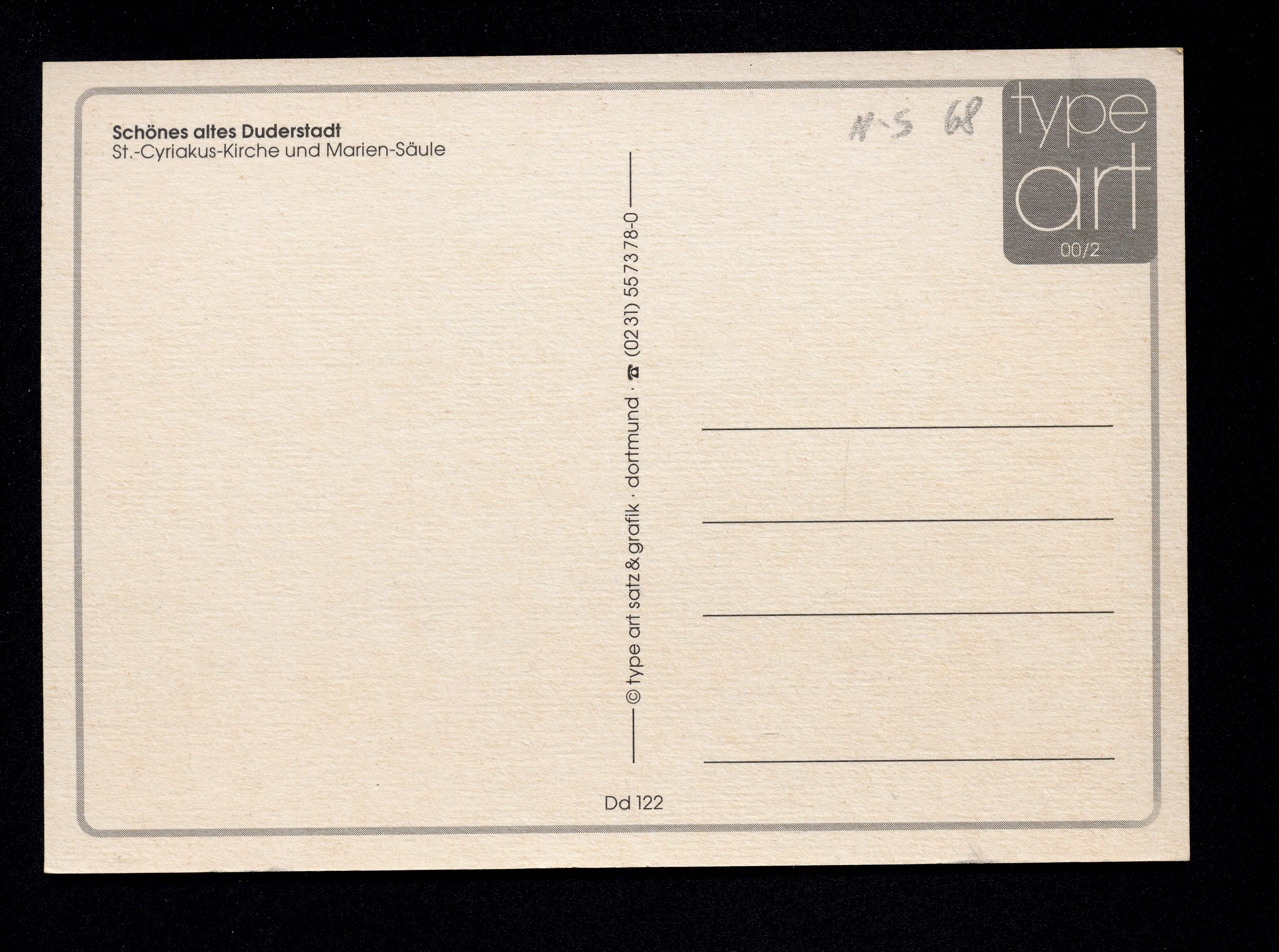 Ort Duderstadt Motive St.-Cyriakus-Kirche und Marien-Säule Format groß Jahr 2000 Verlag type art satz & grafik, Dortmund Bestell- oder Individualnummer Dd 122 00/2 Tags Mariensäule