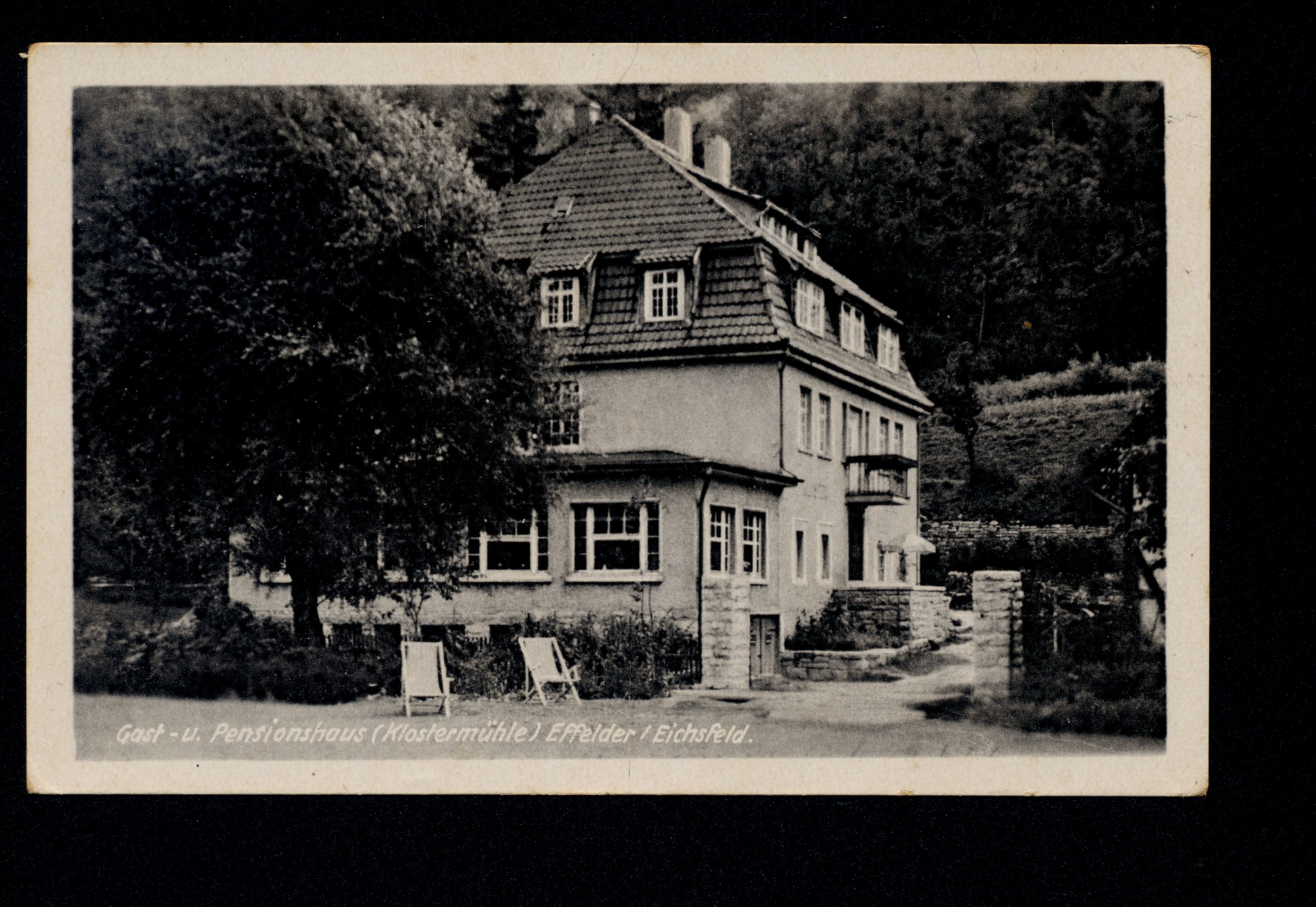 Ort Effelder Motive Gast- u. Pensionshaus ''Klostermühle'' Format klein Jahr 1951 Verlag Karl Althaus, Ershausen Bestell- oder Individualnummer M 129 II.51.1T Tags Gasthaus
