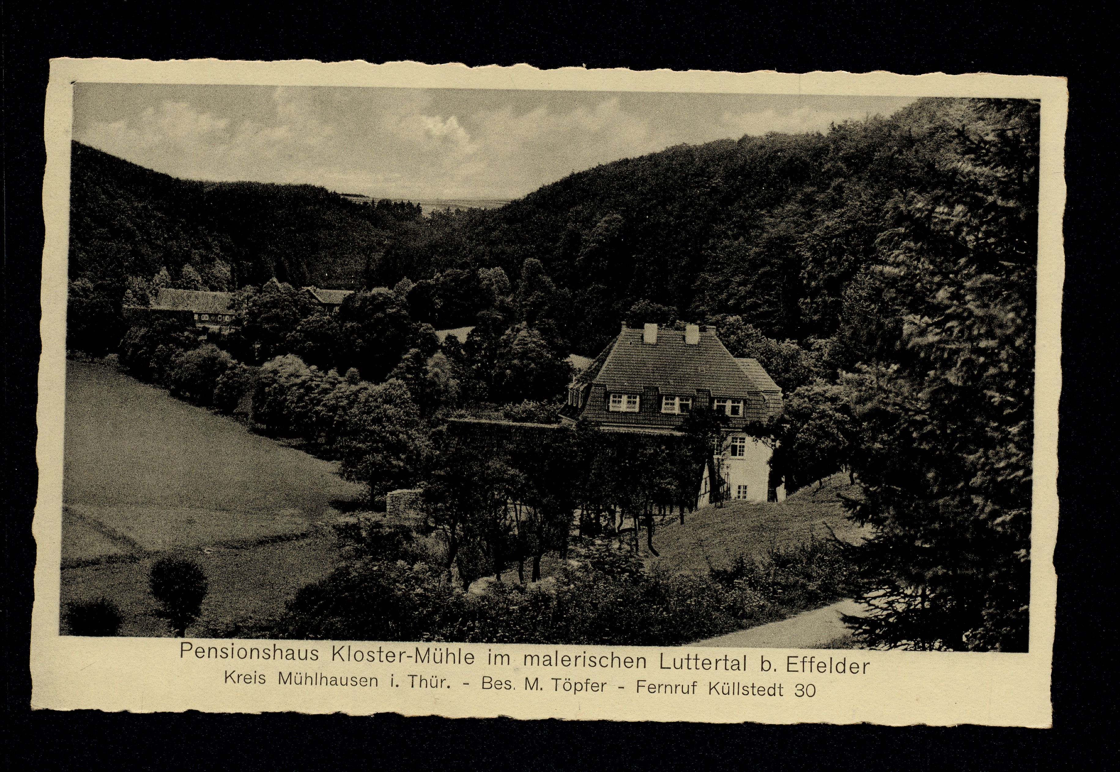 Ort Effelder Motive Pensionshaus Kloster-Mühle im malerischen Luttertal bei Effelder Kreis Mühlhausen i. Thür. - Bes. M. Töpfer Format klein Verlag Aloys Mecke, Duderstadt Bestell- oder Individualnummer Nr. 719 Z 1 Tags Klostermühle Gasthaus