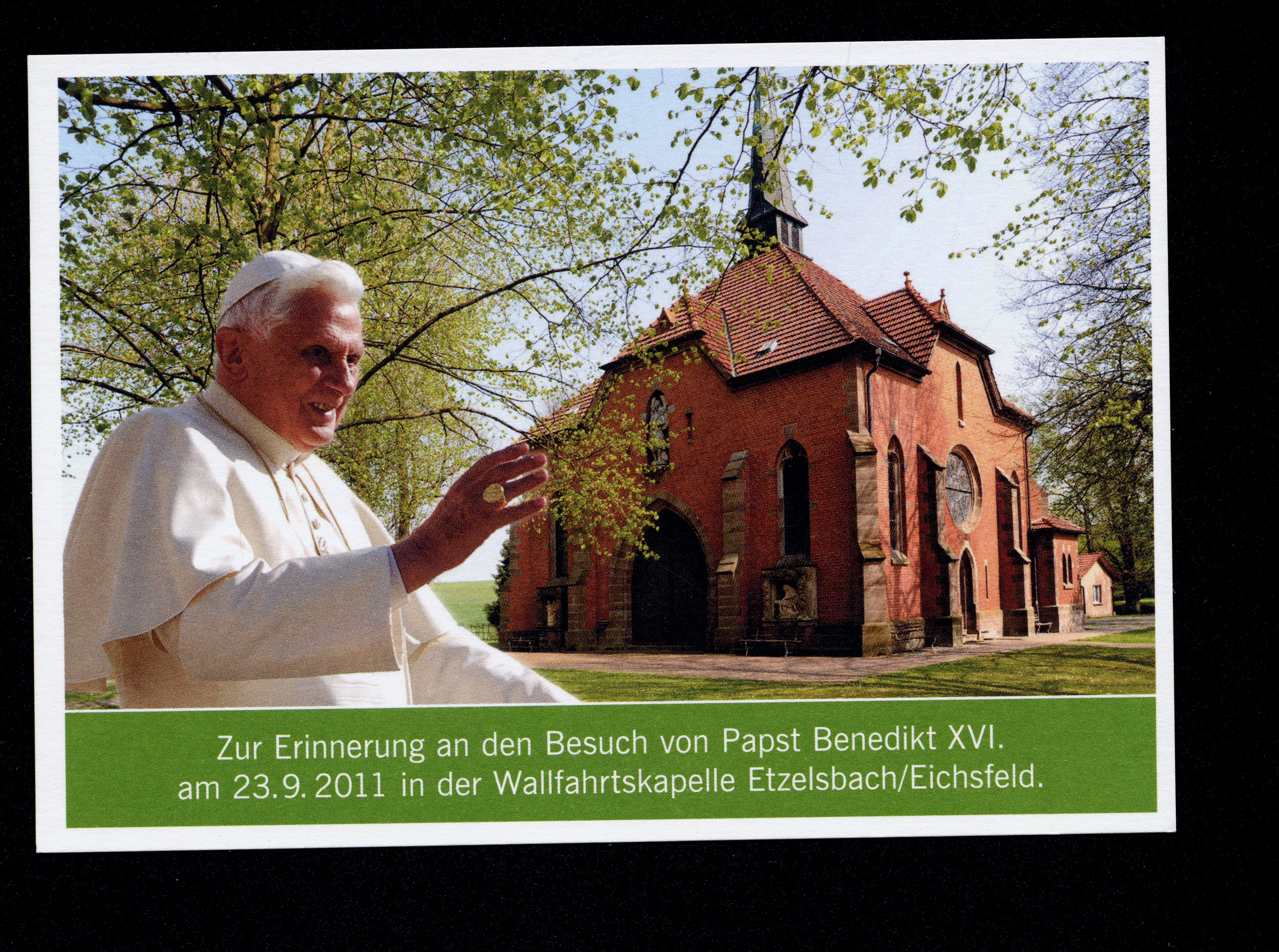 Zur Erinnerung an den Besuch von Papst Benedikt XVI. am 23.9.2011 in der Wallfahrtskapelle Etzelsbach/Eichsfeld