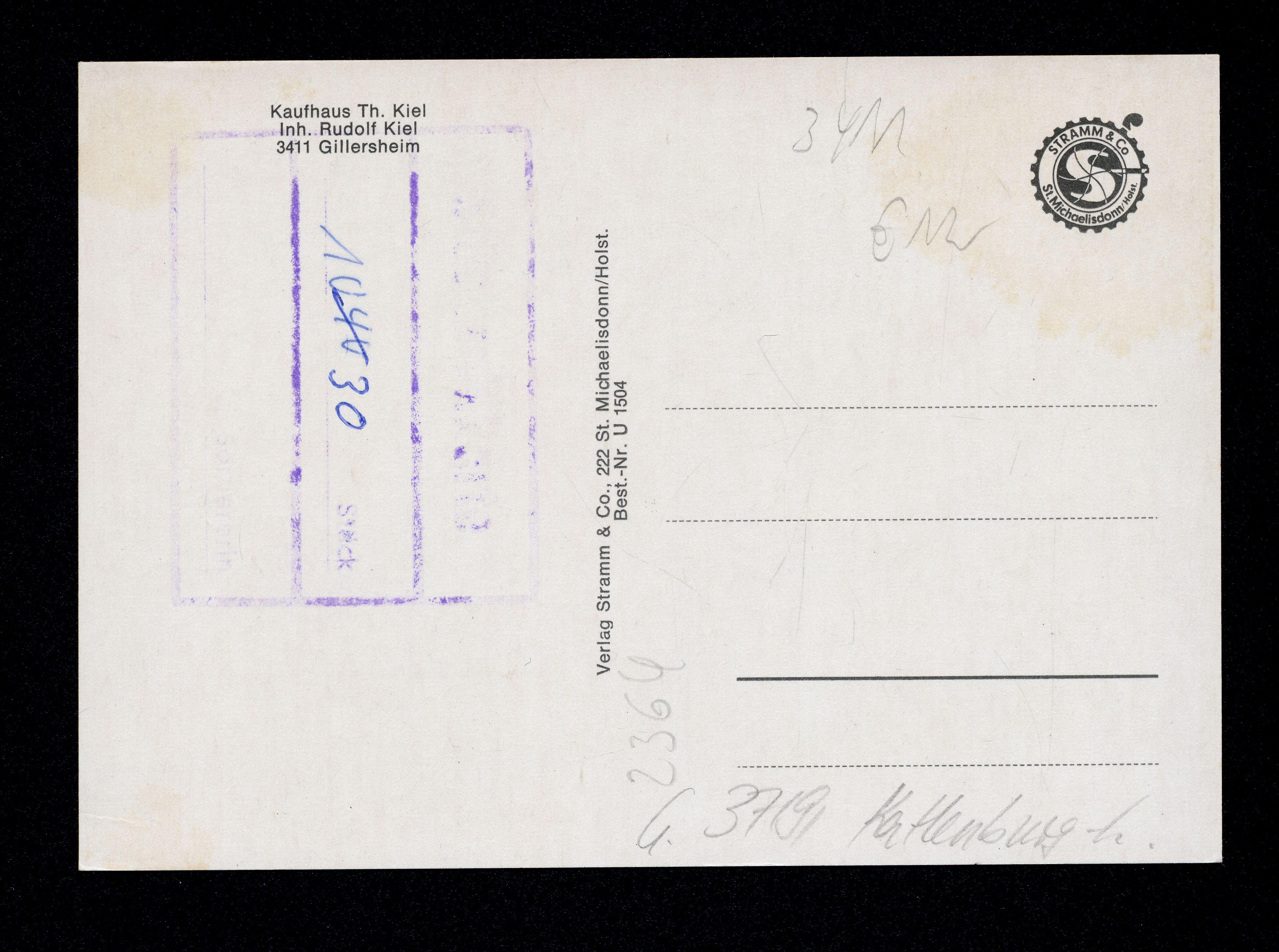 Ort Gillersheim Motive Panorama Schule Max-Planck-Institut, Am Holzweg Format groß Verlag Stramm, St. Michaelisdonn / Holst. Bestell- oder Individualnummer Best.-Nr. U 1504 Tags Kaufhaus Th. Kiel Inh. Rudolf Kiel