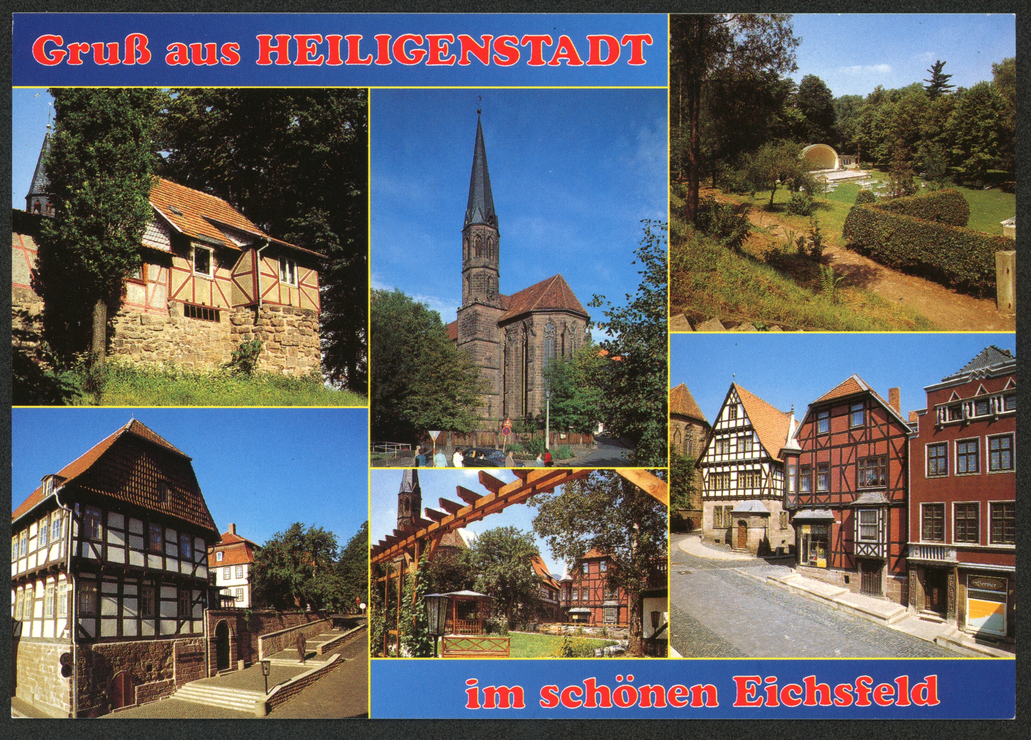 Ort Heiligenstadt Motive Reste der mittelalterlichen Stadtbefestigung Martinskirche Heinrich-Heine-Park Mainzer Haus (Literaturmuseum "Theodor Storm") Format groß Verlag Auslese-Bild-Verlag, Bad Salzungen Bestell- oder Individualnummer Motiv-Nr. Hei 006