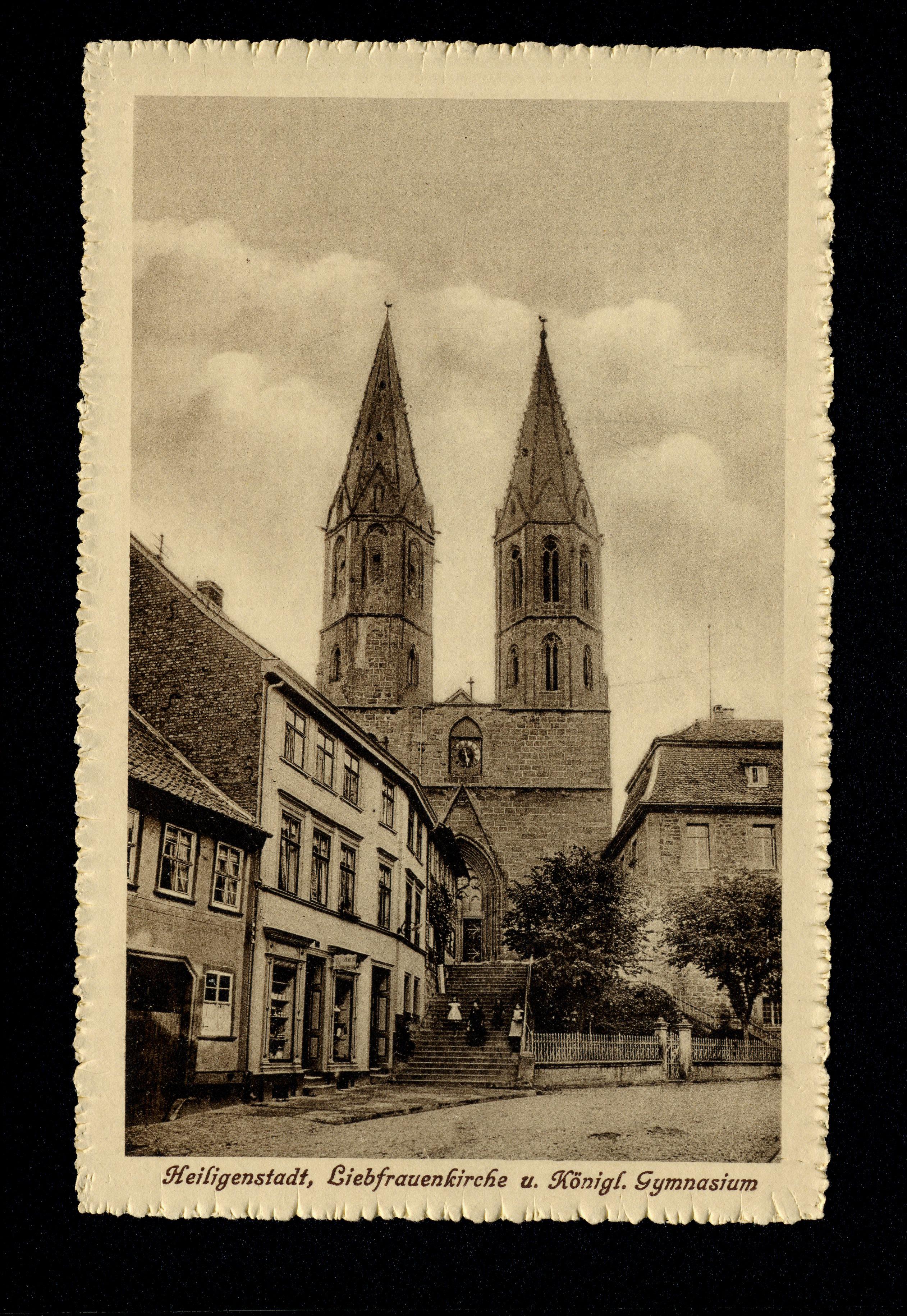 Ort Heiligenstadt Motive Liebfrauenkirche u. Königl. Gymnasium Format klein Jahr 1913 Verlag Albert Multhauf, Heiligenstadt Bestell- oder Individualnummer 4844 4. 13. 77243