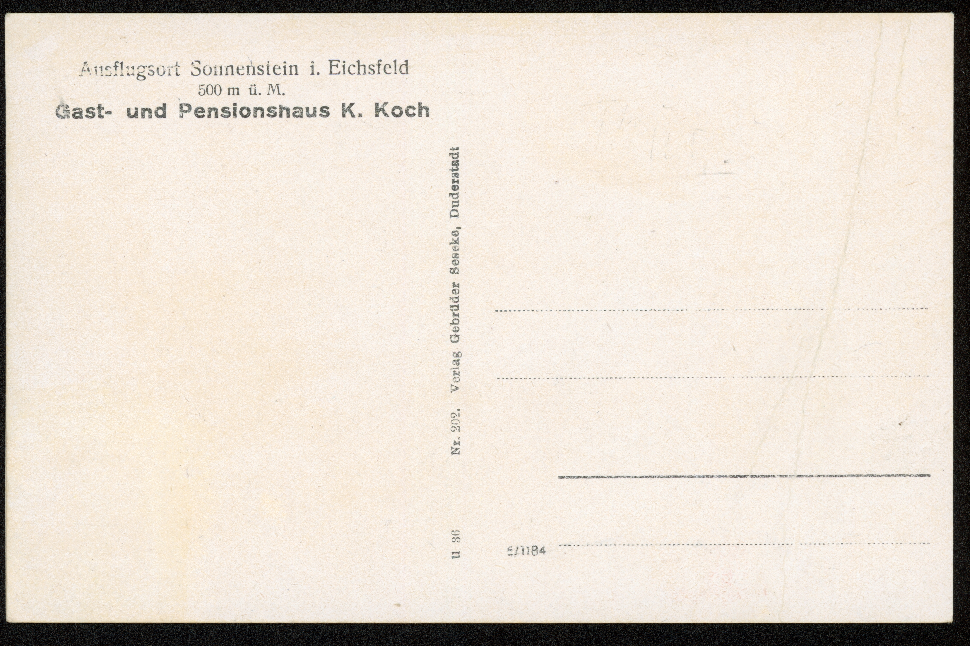 Ort Holungen Motive Gast- und Pensionshaus K. Koch Format klein Verlag Gebrüder Seseke, Duderstadt Bestell- oder Individualnummer Nr. 202 u 36 Tags Gasthaus