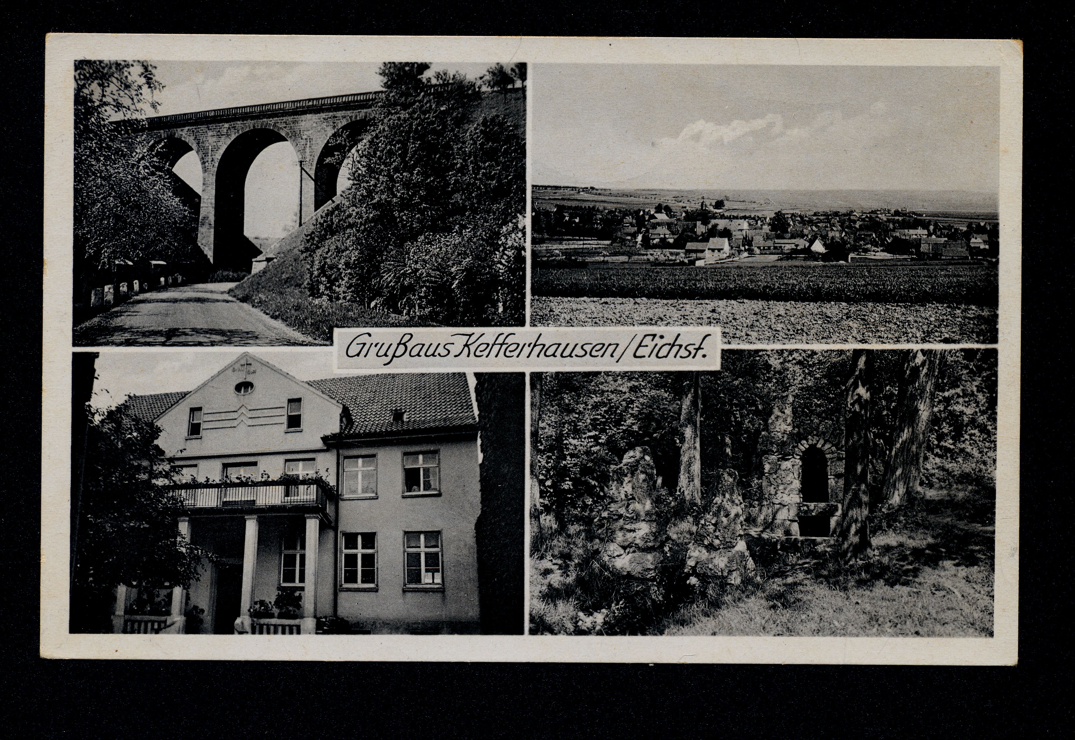Ort Kefferhausen Motive Eisenbahnviadukt Panorama Pfarrhaus St. Josef Unstrutquelle Format klein Jahr 1956 Verlag Georg Heinemann, Kefferhausen/E. Bestell- oder Individualnummer 19524 108554 Tags Katholischer Kindergarten „St. Josef“