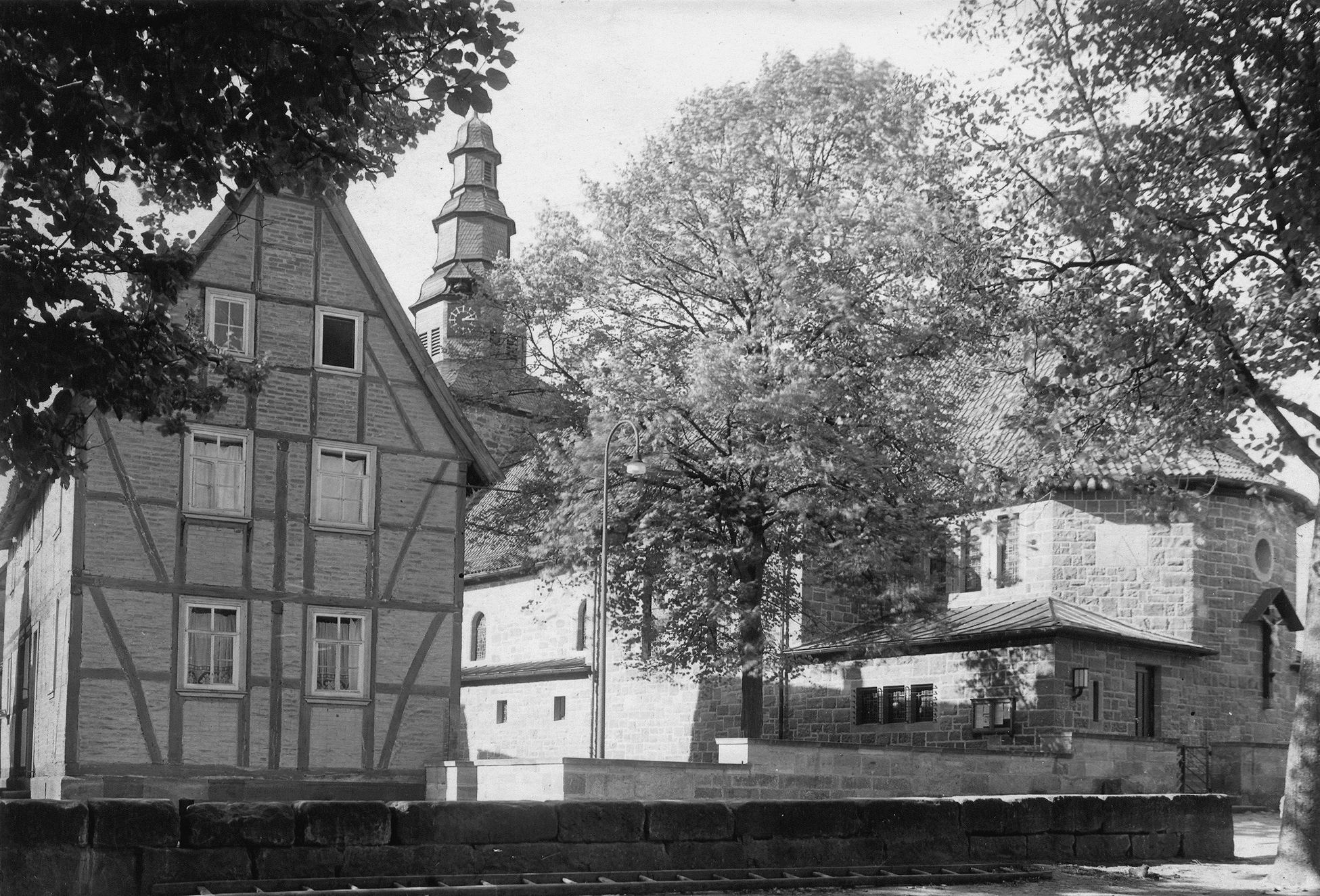Das Foto wurde vom Schulhof aus gemacht. Damals noch mit 2 Linden.