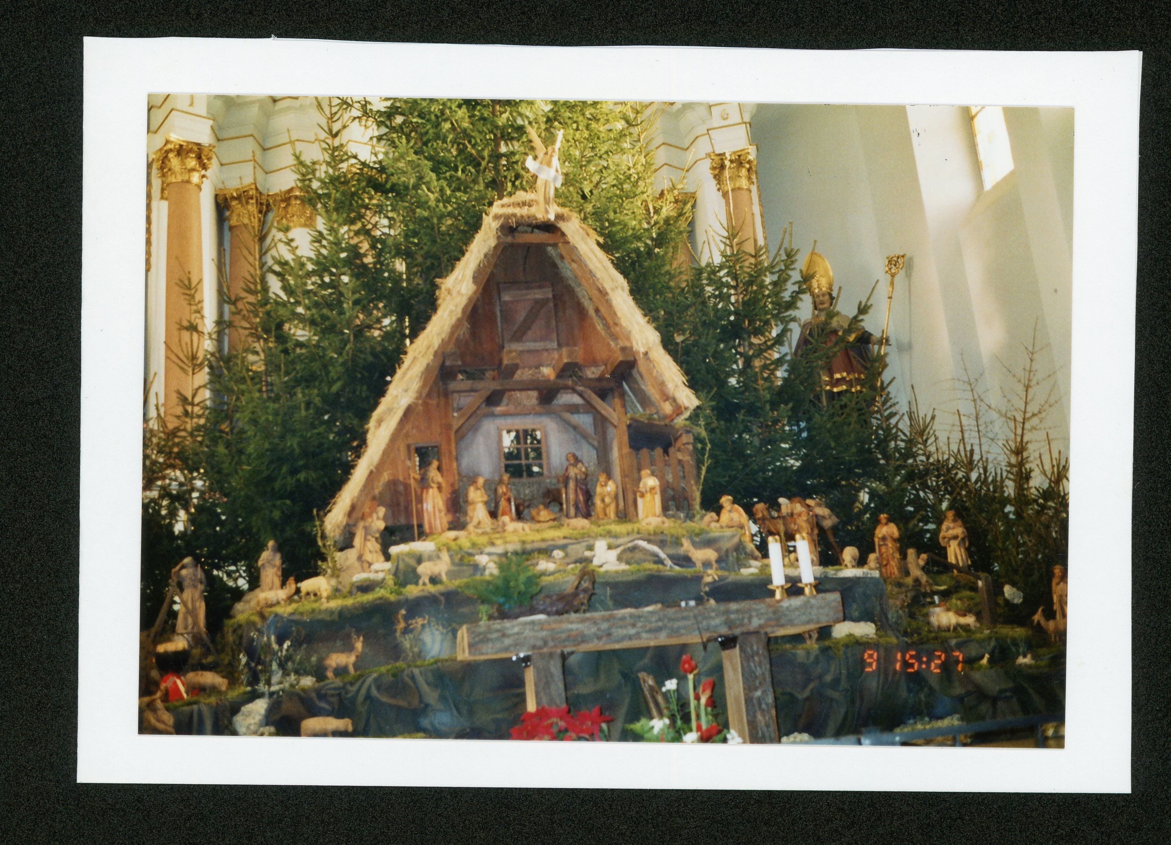 Ort Küllstedt - Belege Beschreibung Foto auf Karton (undatiert) und originales Foto Motive St. Georgs-Pfarrkirche, Blick zum Altar Weihnachtskrippe Format Sonderformat Jahr 1998 Verlag - Bestell- oder Individualnummer - Tags Weihnachten