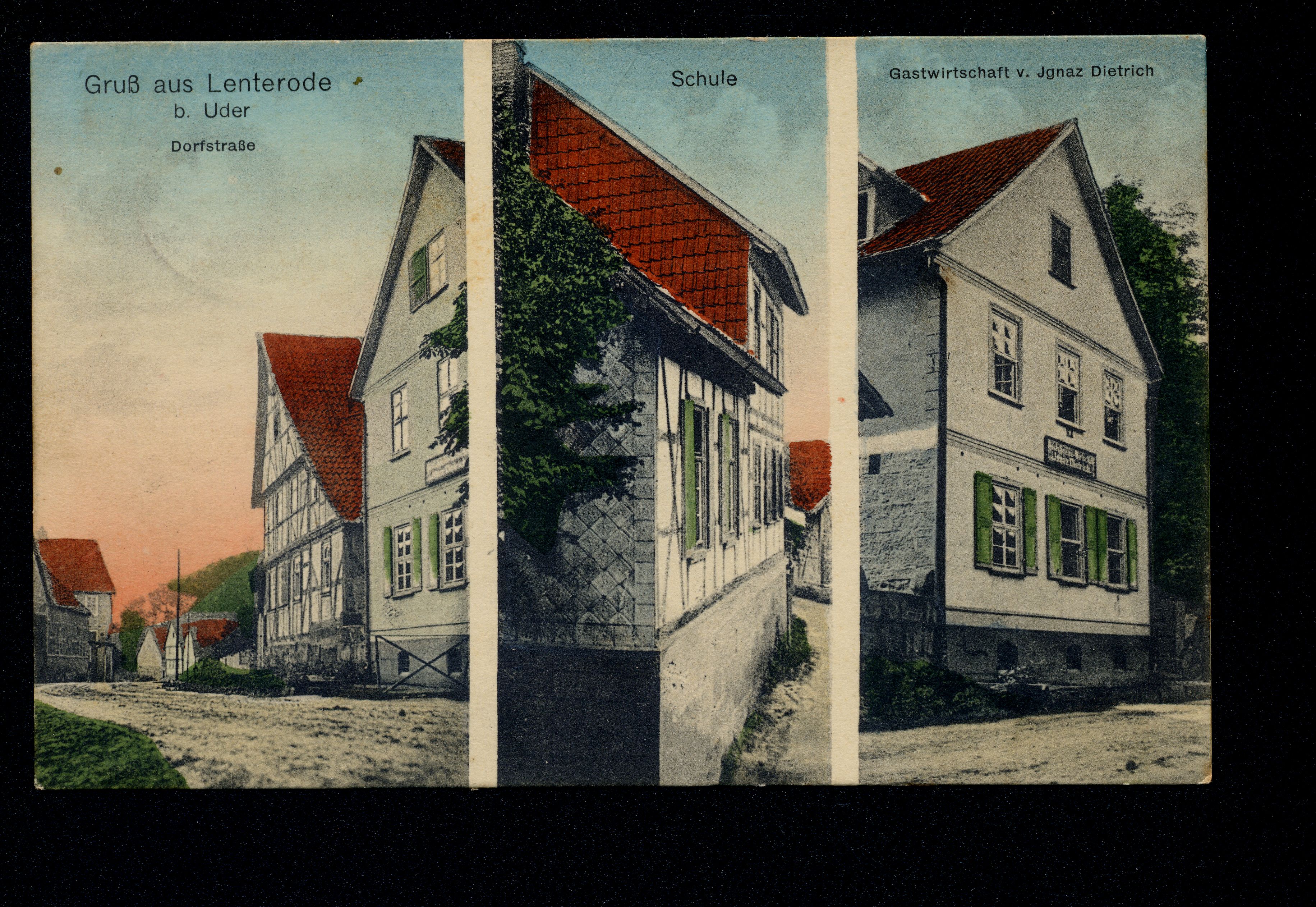 Ort Lenterode Motive Dorfstraße Schule Gastwirtschaft v. Ignaz Dietrich Format klein Jahr 1914 Verlag - Bestell- oder Individualnummer - Versanddatum 19.07.1914 Tags Gasthaus