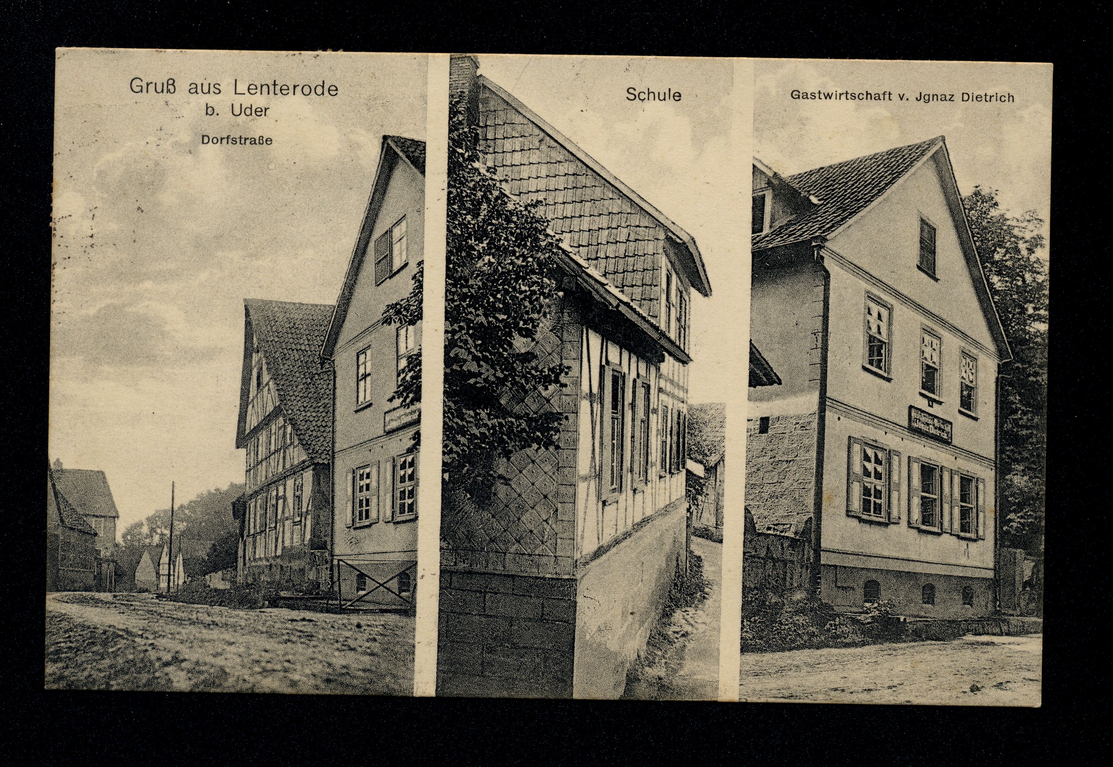 Ort Lenterode Motive Dorfstraße Schule Gastwirtschaft v. Ignaz Dietrich Format klein Jahr 1920 Verlag - Bestell- oder Individualnummer - Versanddatum 13.06.1920 Tags Gasthaus